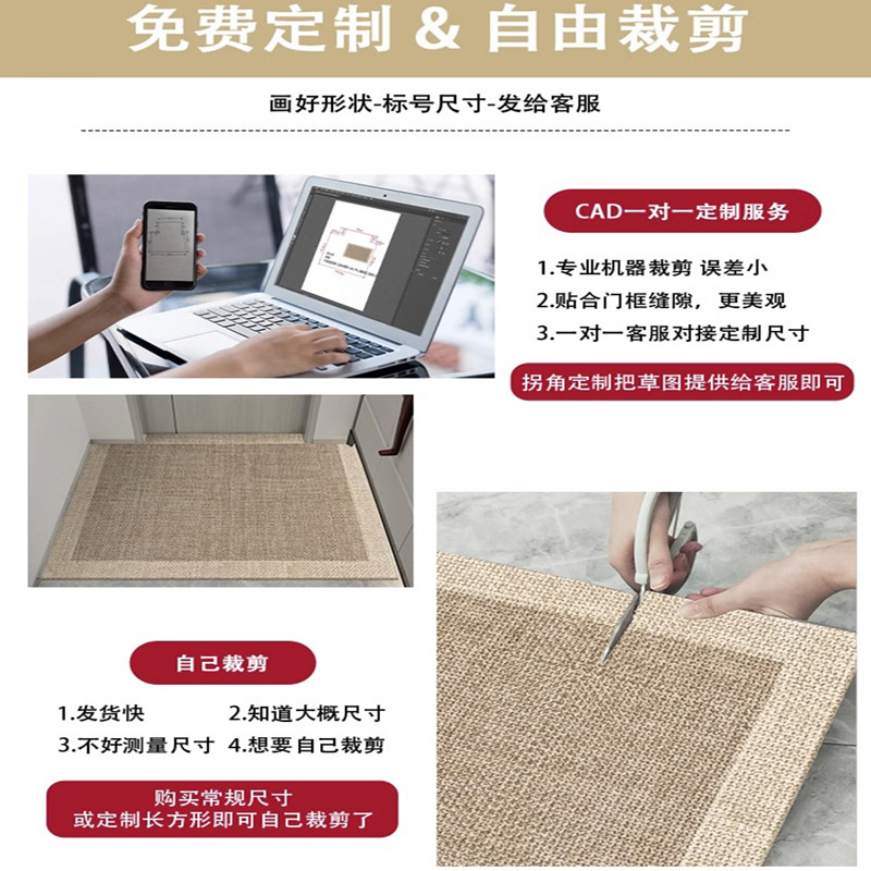 入户门地垫纯色仿剑麻地毯门垫进门大门口玄关客厅可裁剪防滑脚垫