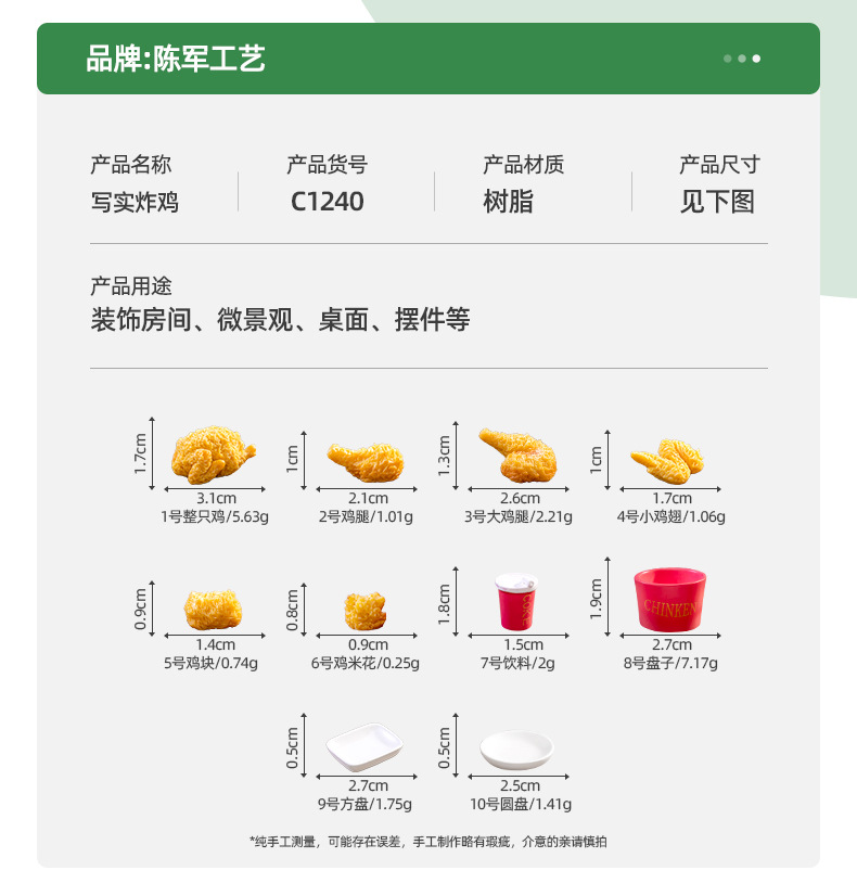 微景观创意仿真写实食玩鸡腿鸡翅鸡米花 DIY装饰品配件微缩小摆件