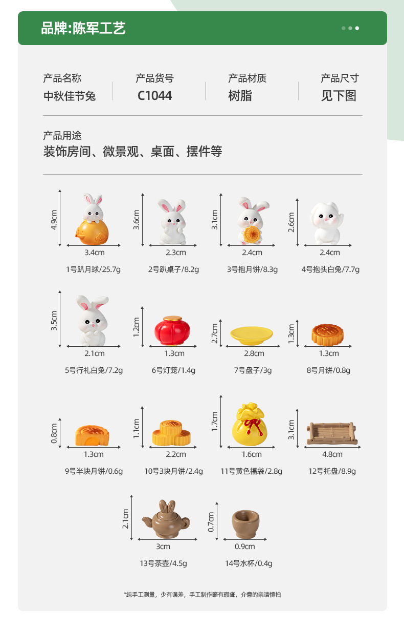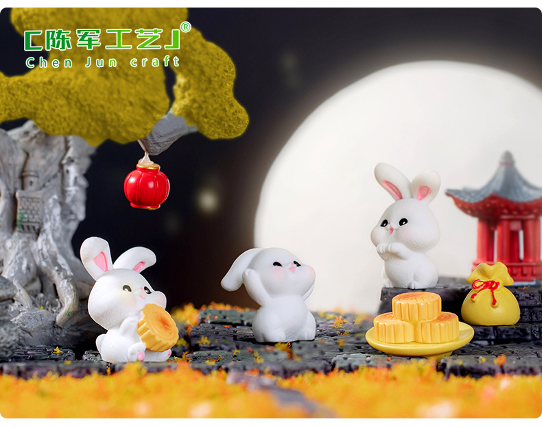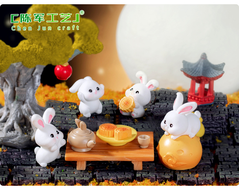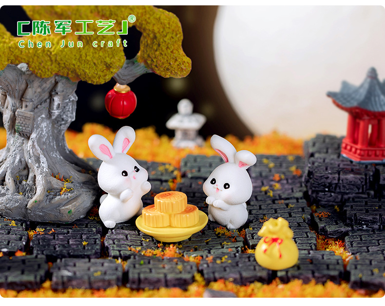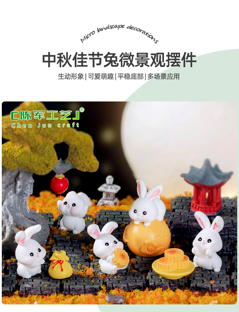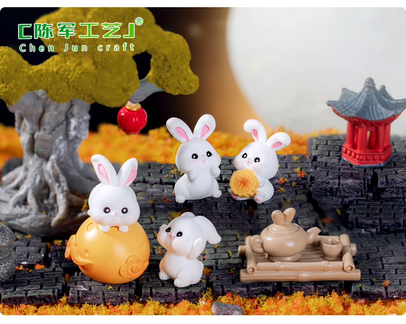 微景观中秋节玉兔子月饼可爱动物公仔装饰品配件树脂工艺品小摆件