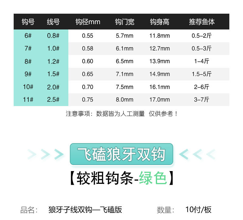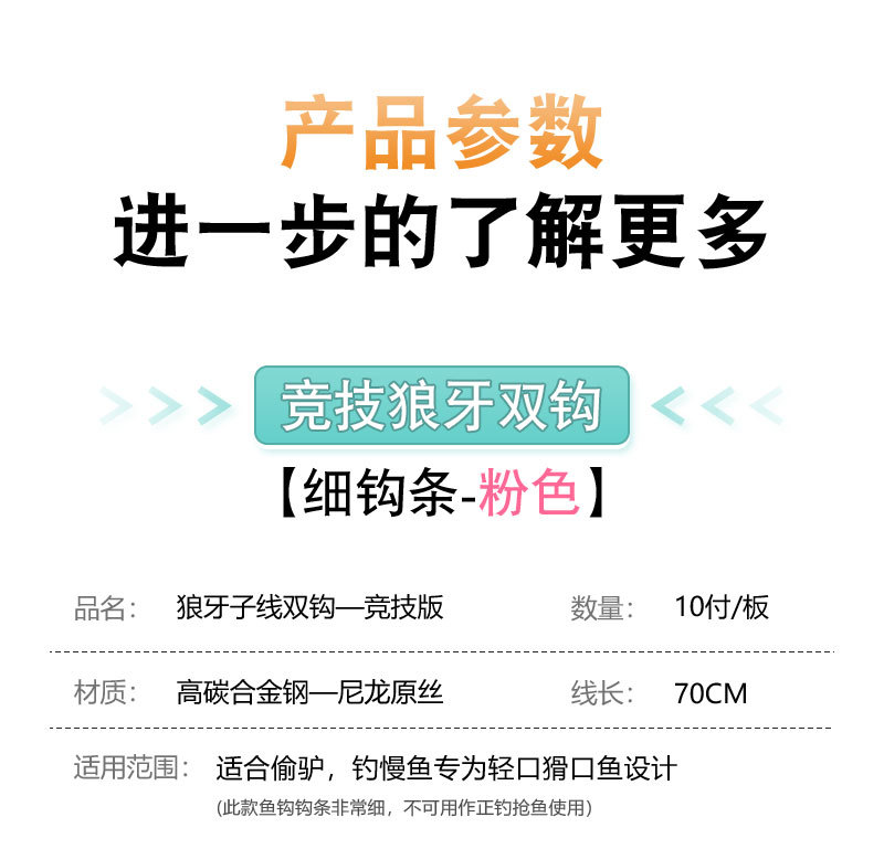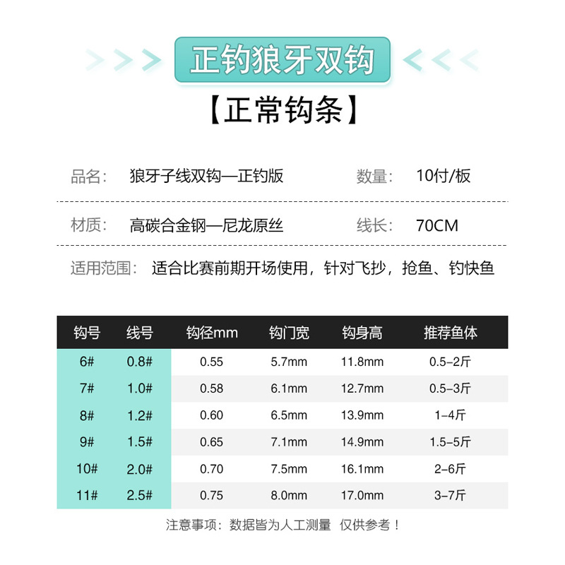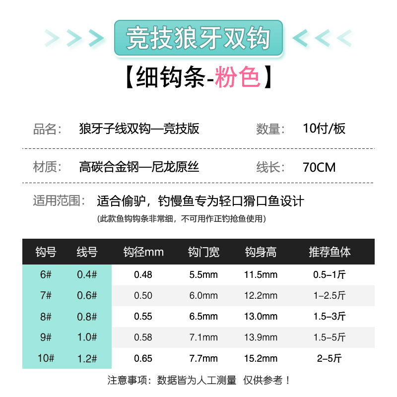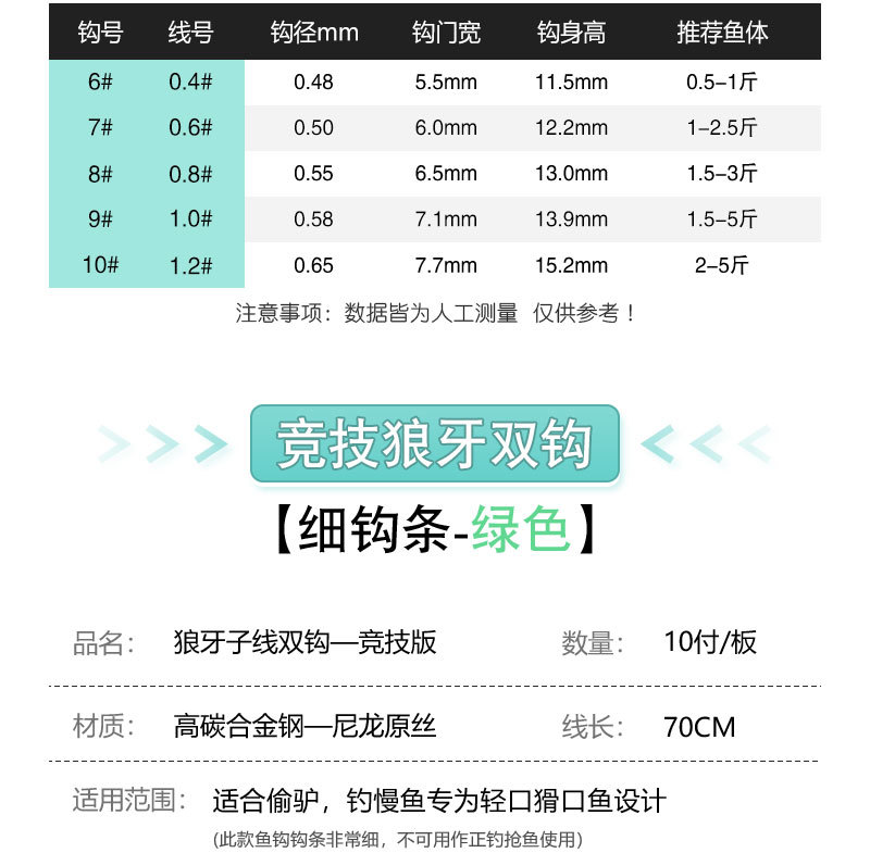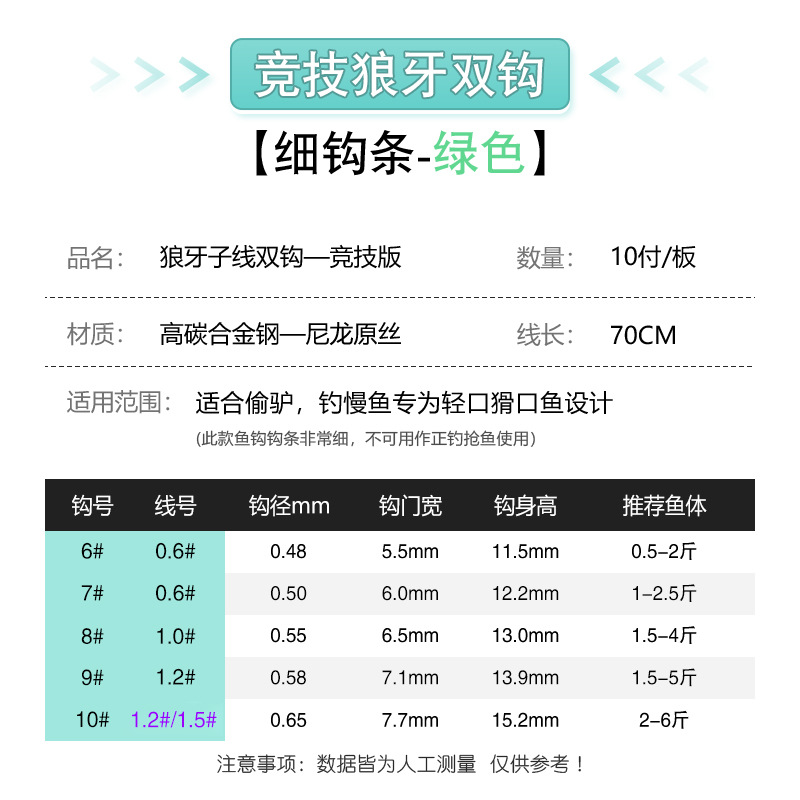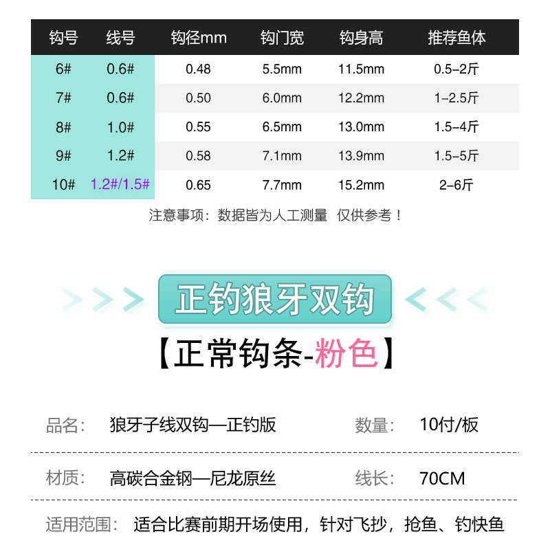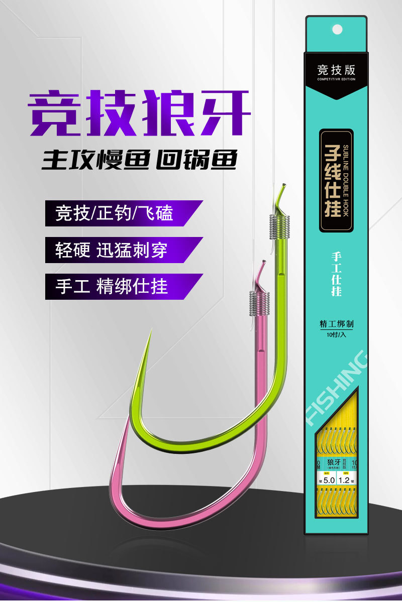 千鲤莱鱼钩批钓具子线双钩双勾绑好成品细子线竞技黑坑狼牙钓渔具