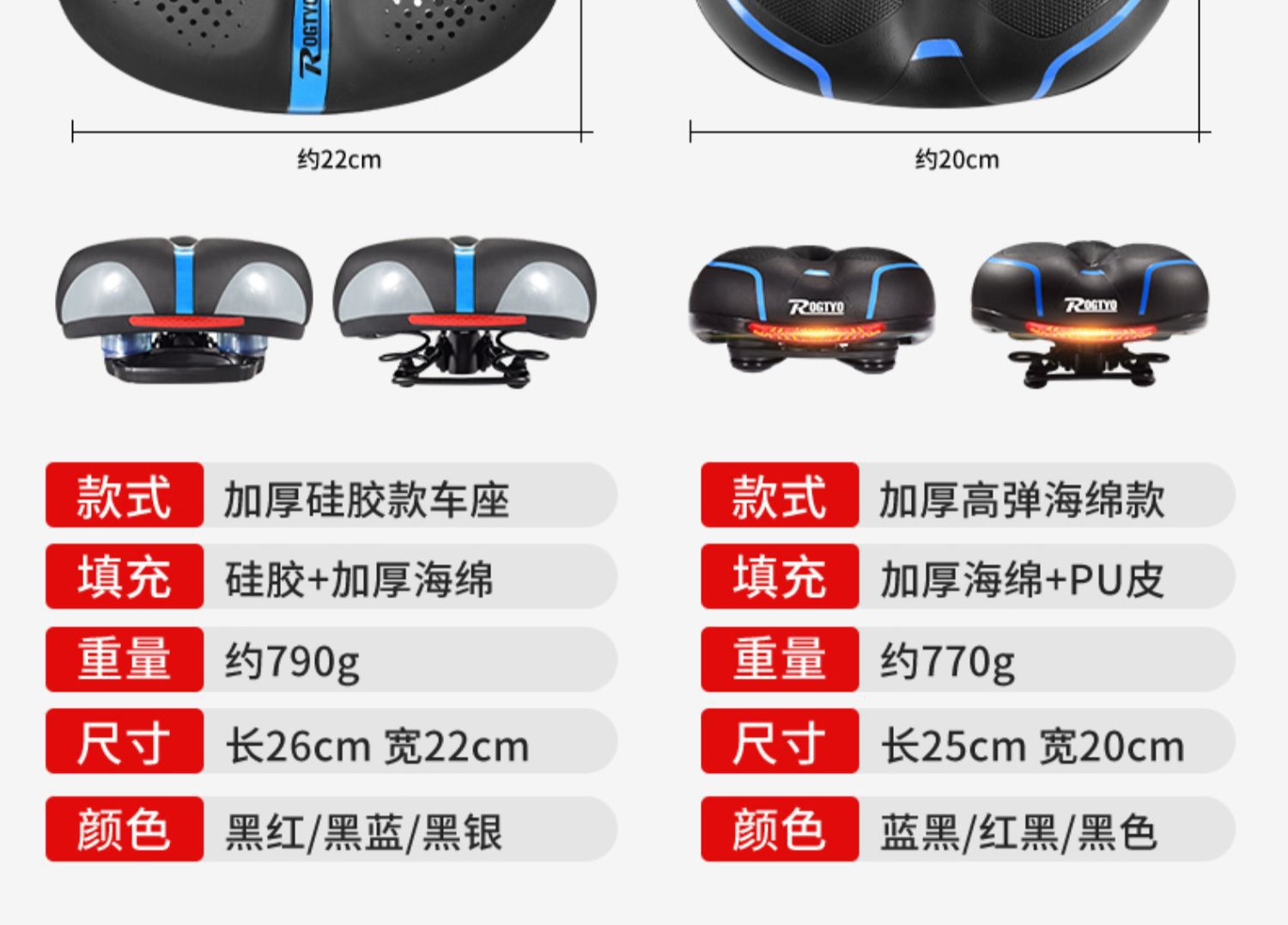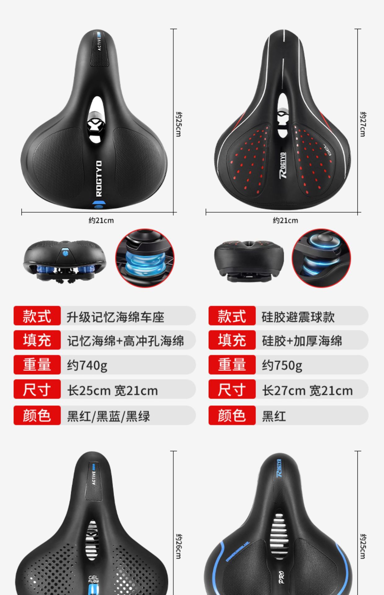 自行车坐垫鞍座山地车座垫舒适柔软加厚硅胶车座通用座子带反光片