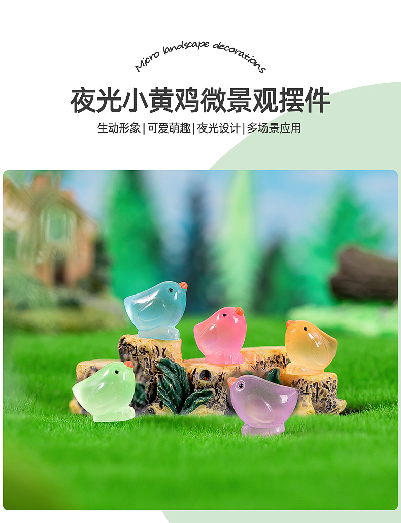 微景观摆件夜光小黄鸡荧光饰品多肉苔藓创意树脂工艺品桌面小摆件