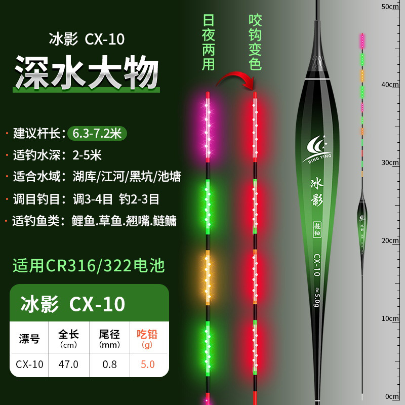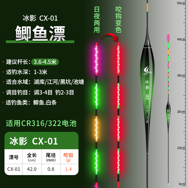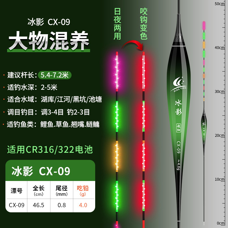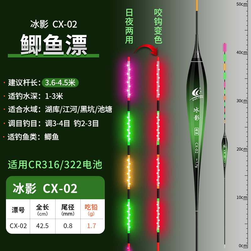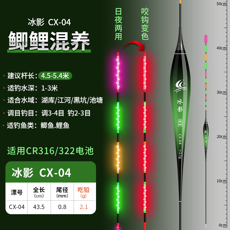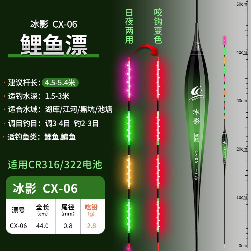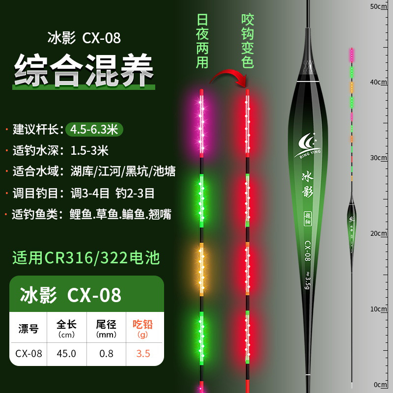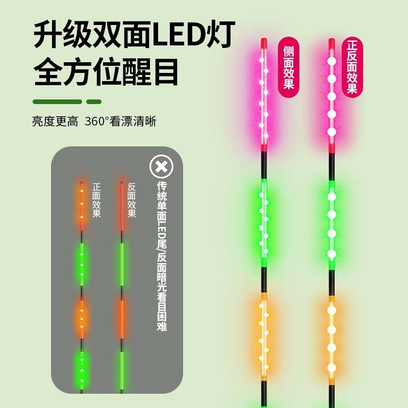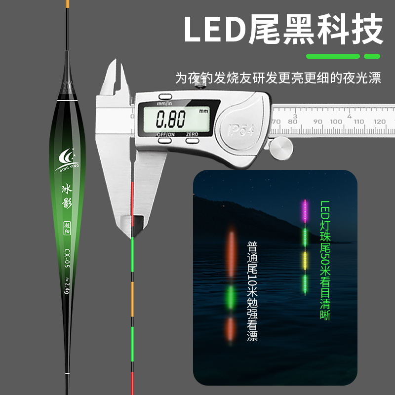 0.8mm极细尾LED咬钩变色夜光漂316高灵敏硬尾电子漂超细浮漂鱼漂