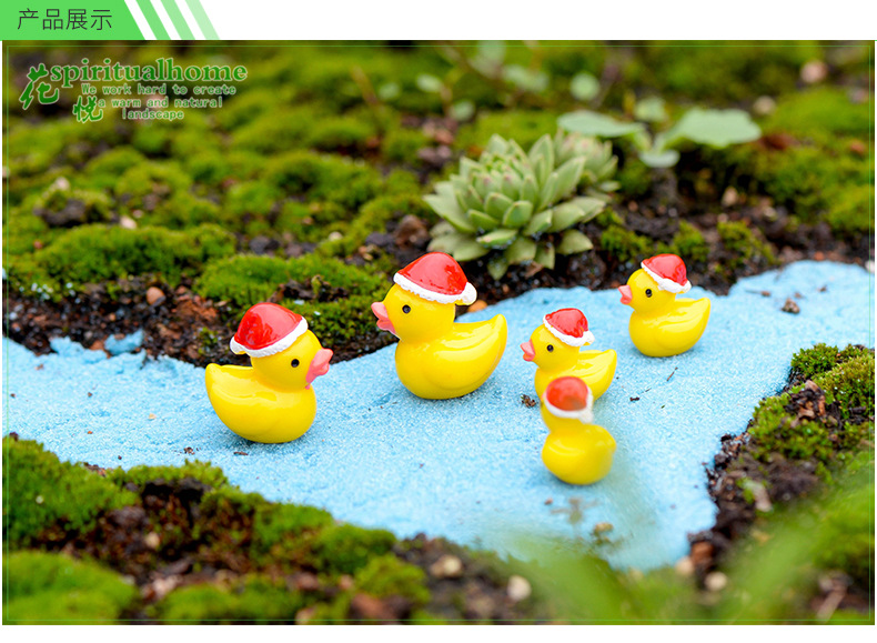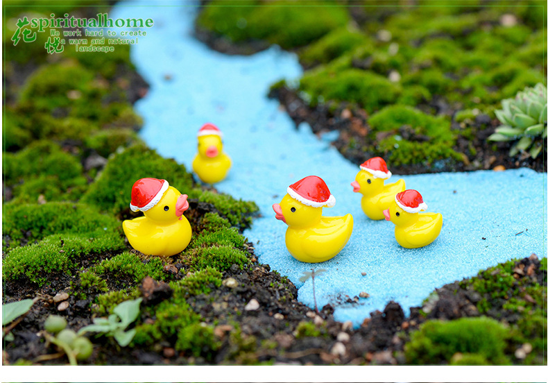 圣诞小黄鸭 苔藓微景观zakka迷你树脂工艺品摆件DIY蛋糕配件