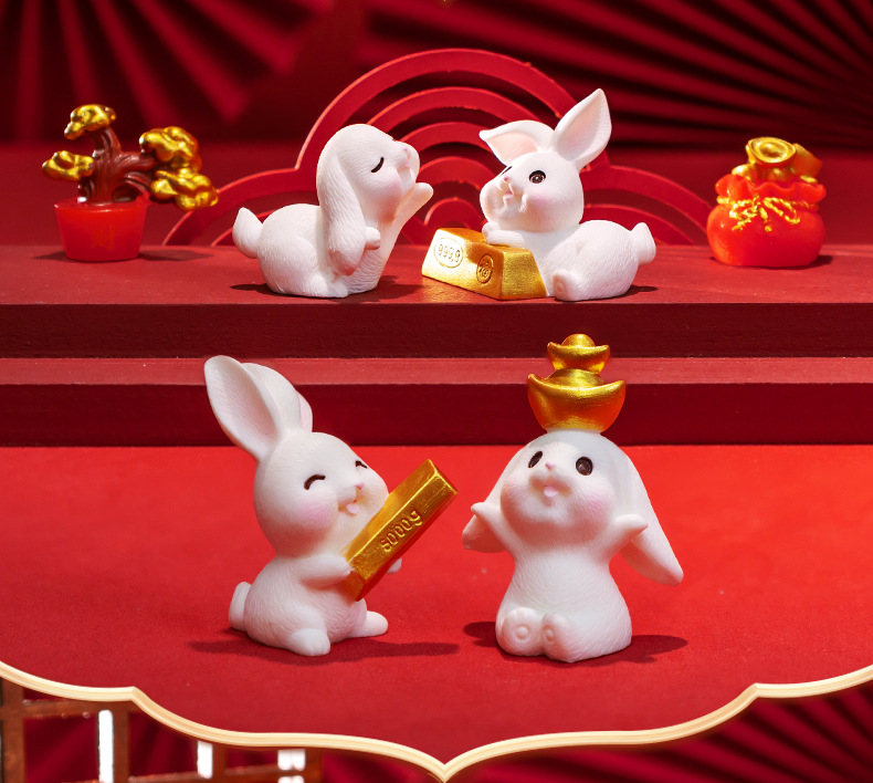 微景观创意可爱新年元宝小兔子动物公仔装饰品配件车载桌面小摆件