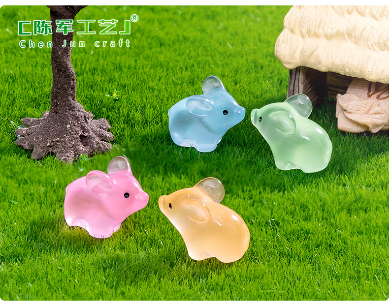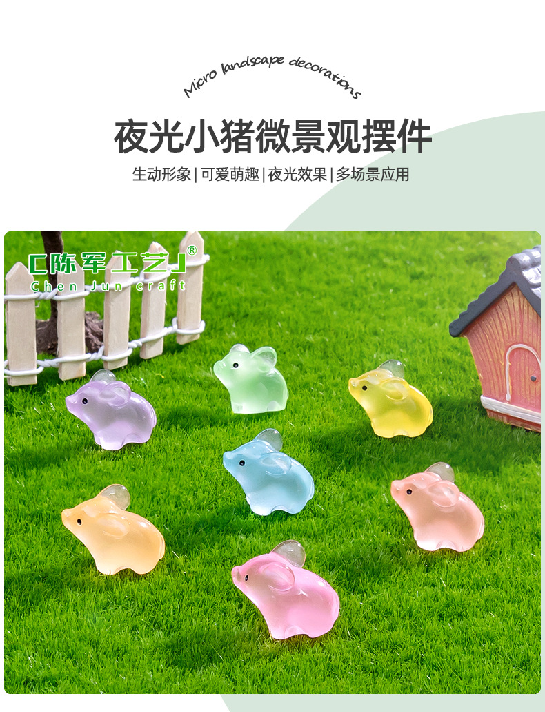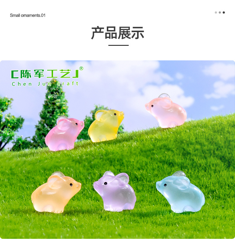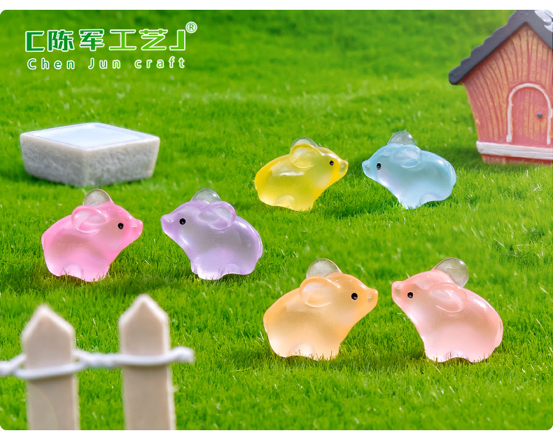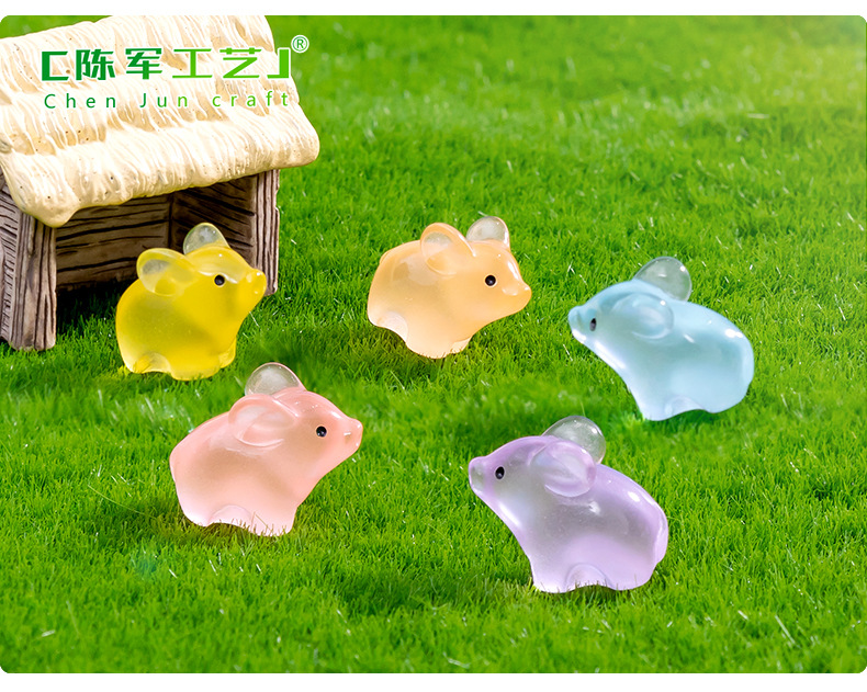 微景观摆件 树脂工艺品苔藓园艺造景DIY彩色荧夜光小猪迷你小摆件