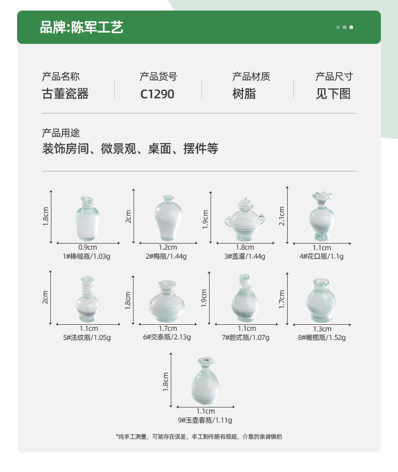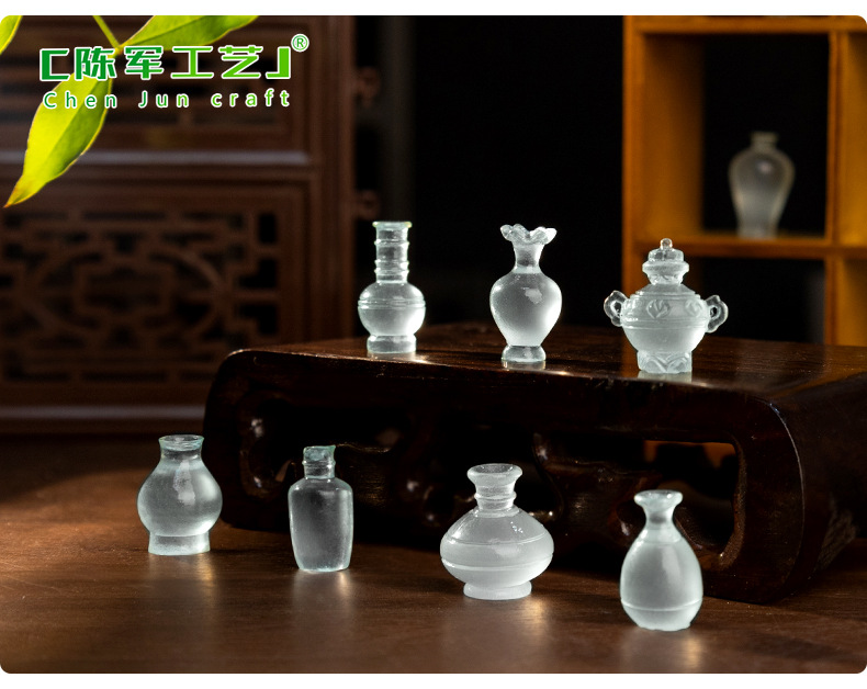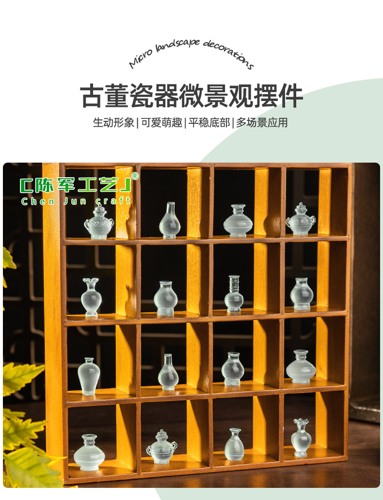 微景观创意冰透橄榄瓶花口瓶瓷器 DIY装饰品挂配件微缩场景小摆件