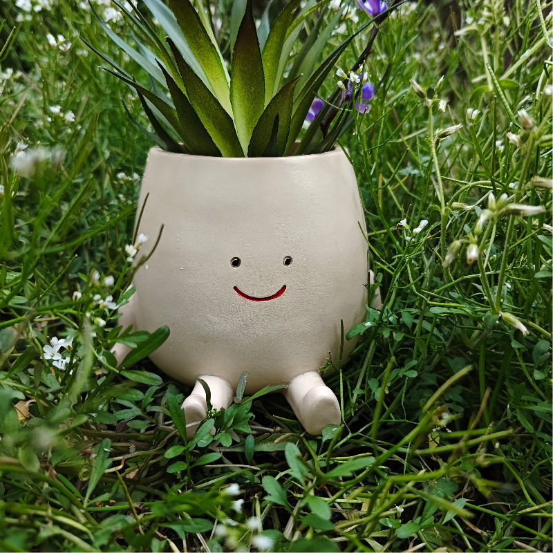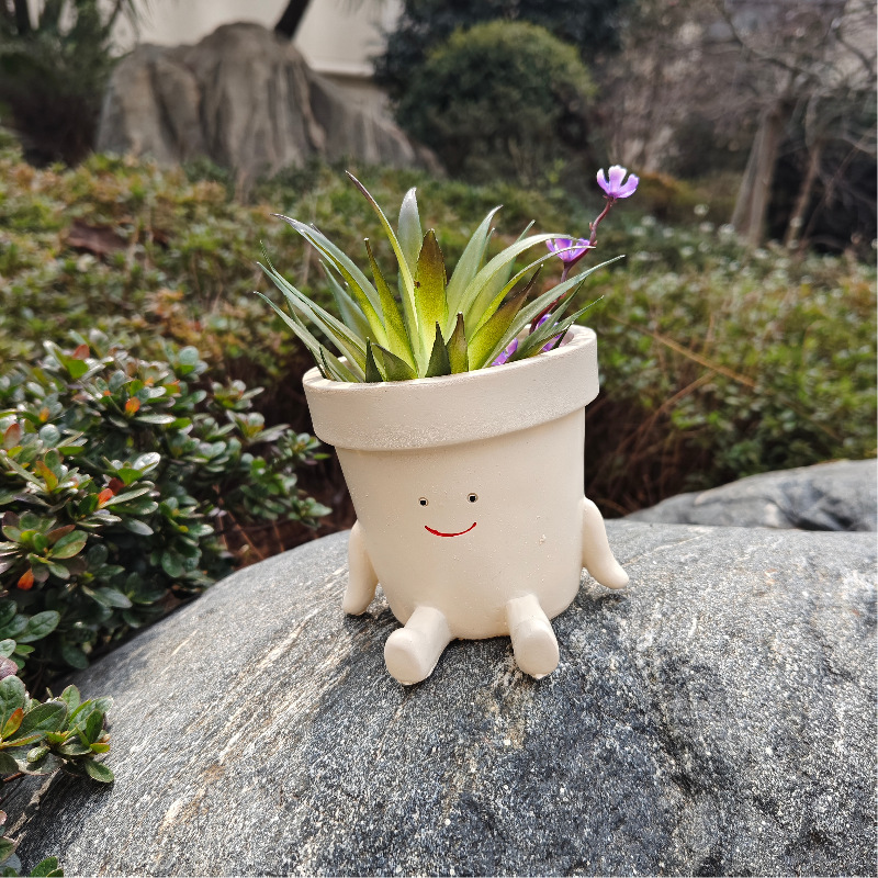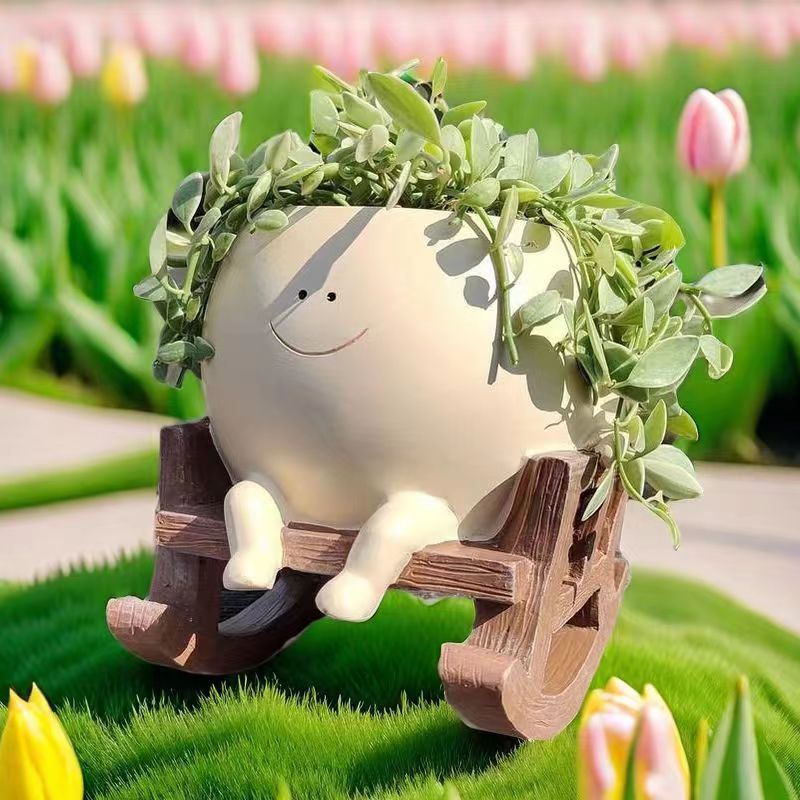 跨境笑脸多肉可爱笑脸摇椅花盆创意家居装饰布置看书摇椅花盆摆件
