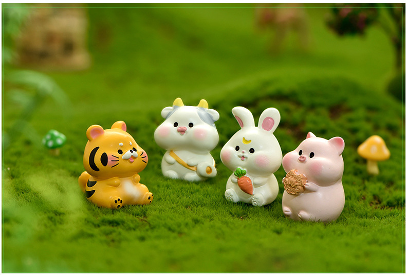 微景观盆景十二生肖彩色树脂摆件鼠牛虎兔龙蛇马羊猴鸡狗猪工艺品