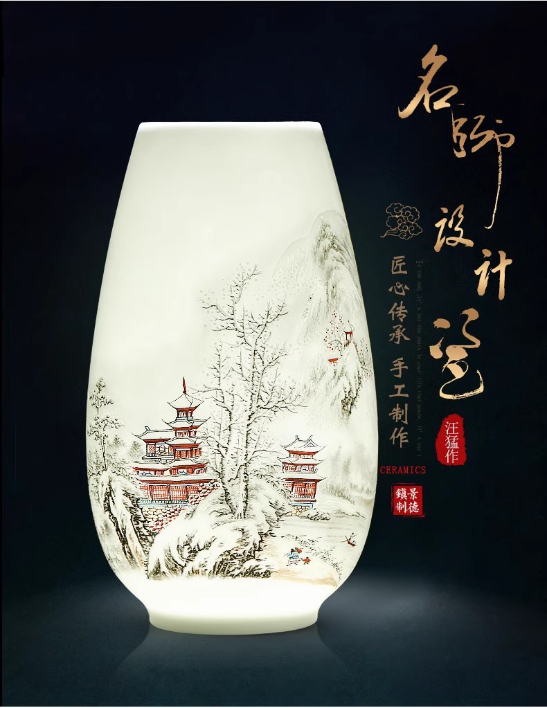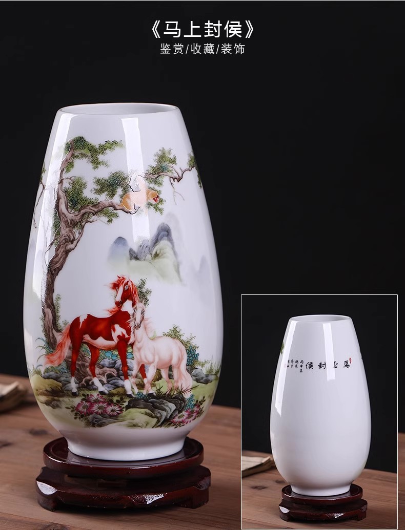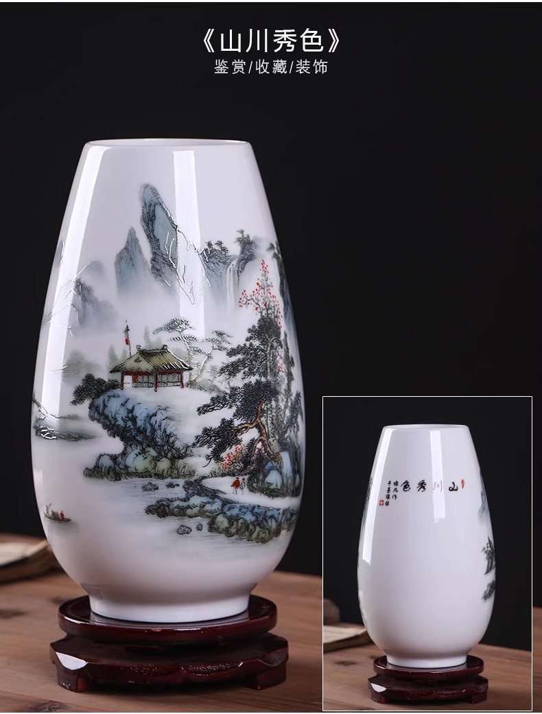 景德镇陶瓷器小花瓶摆件客厅插花干花中式家居装饰品电视柜工艺品