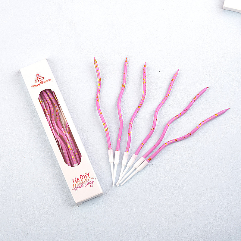 生日曲线蜡烛 多彩金色彩金银色麻花螺纹蜡烛 蛋糕曲线弯曲蜡烛