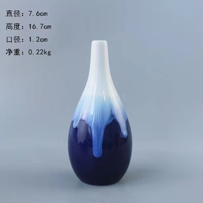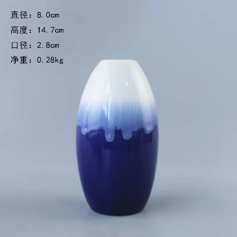 流釉窑变蓝色陶瓷花瓶摆件 家居装饰素烧白花瓶花插三件套装跨境