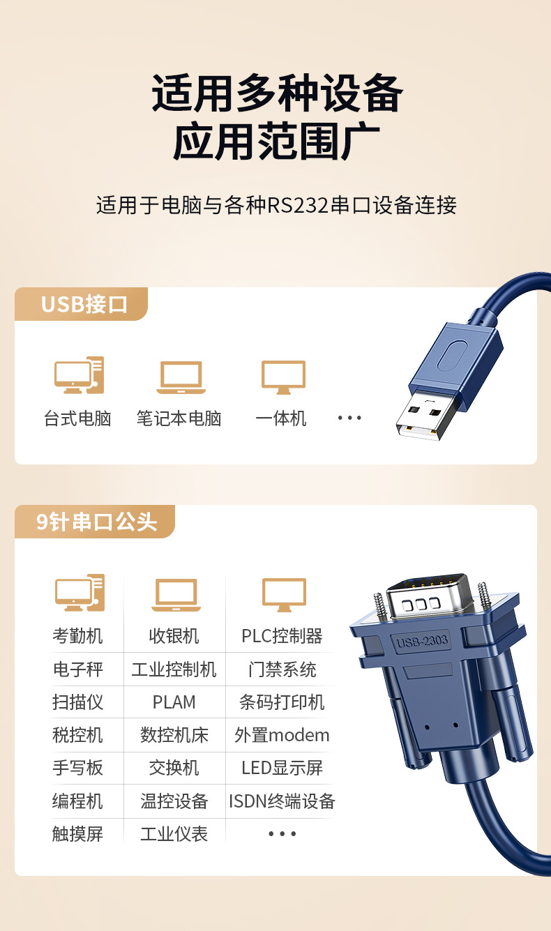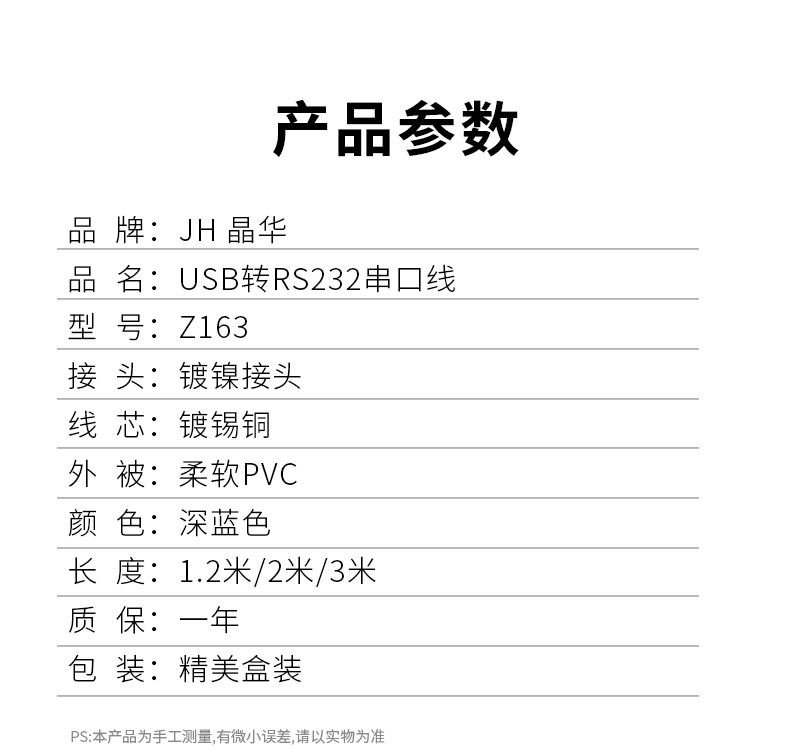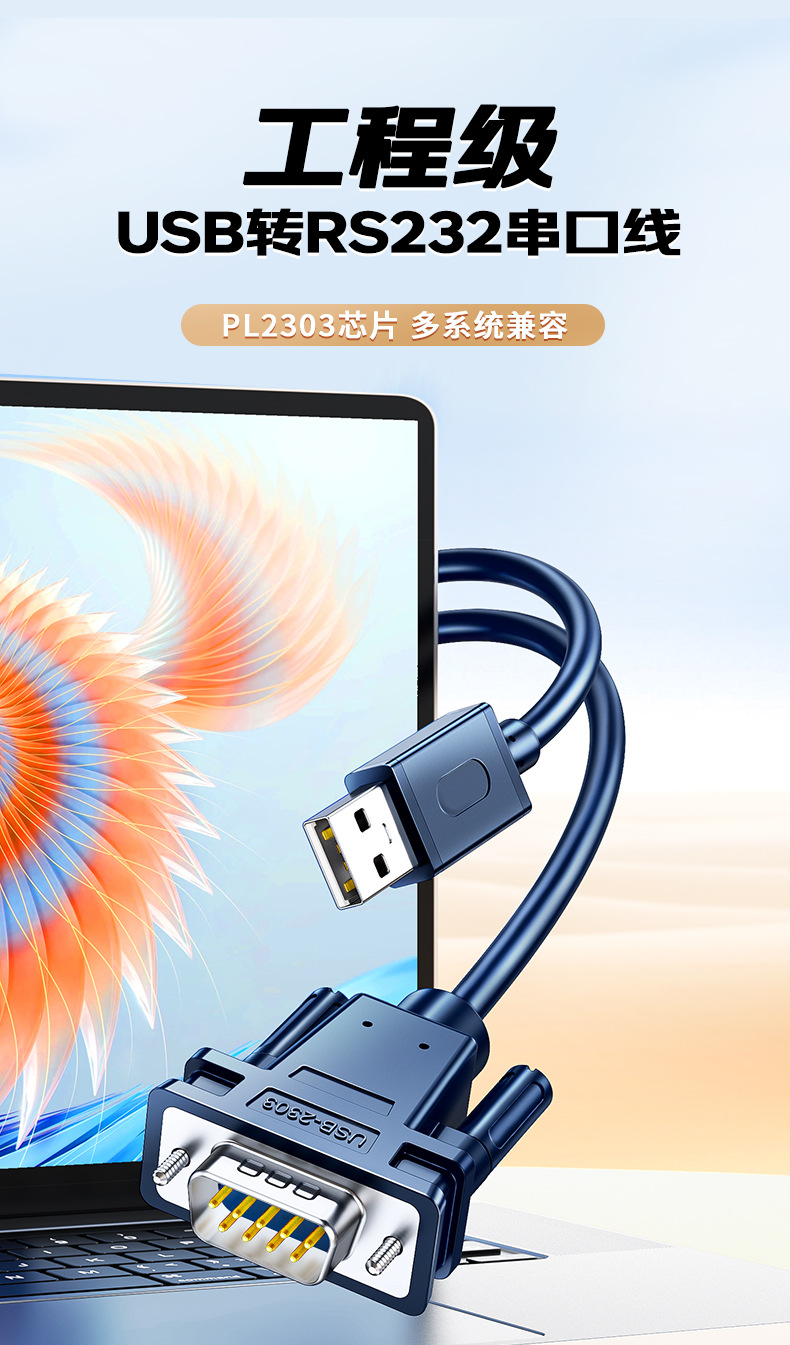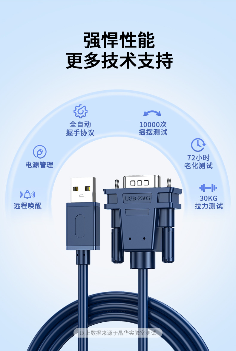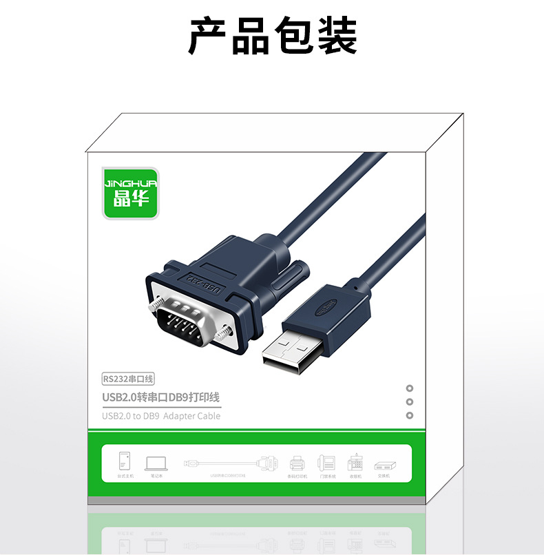晶华工厂USB转串口线usb转RS232串口数据线DB9针COM口电脑转换器