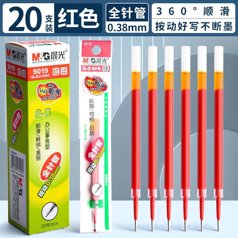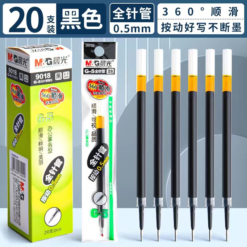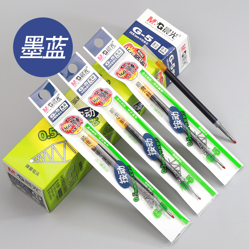 晨光G-5按动笔芯子弹头中性笔芯0.5MM 红墨蓝黑色水笔芯k35替芯子