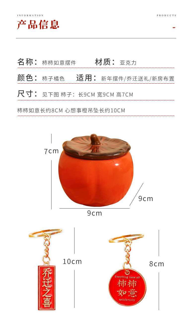乔迁之喜柿柿如意摆件新居入伙布置装饰用品柿子客厅入宅礼品大全