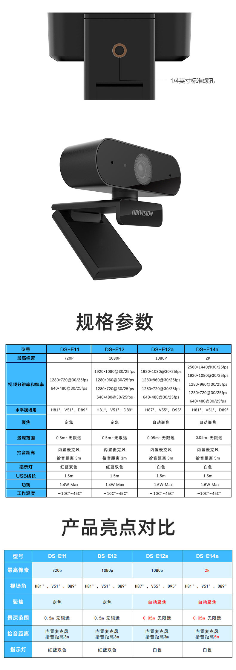 海康威视usb外置摄像头带麦克风电脑台式笔记本直播网课考研复试
