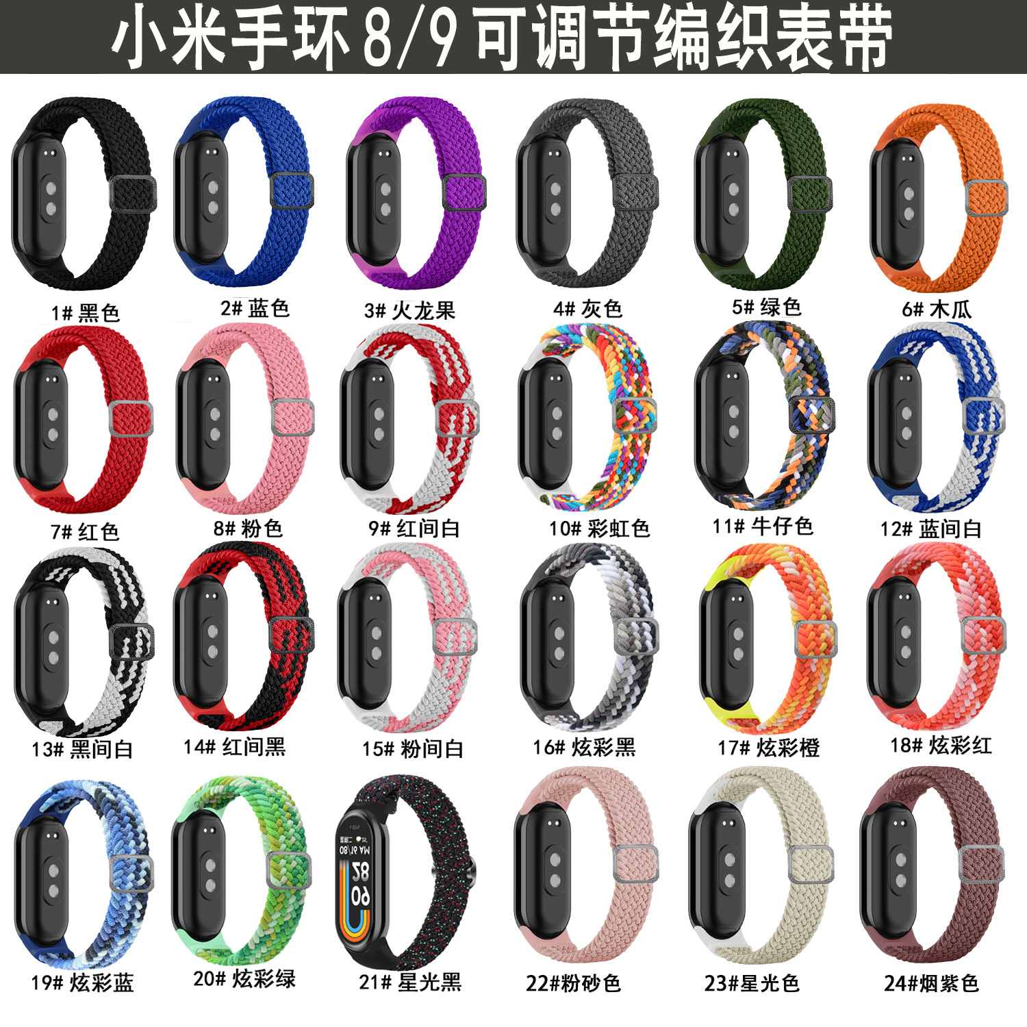 适用小米手环9/8表带小米手环可调节弹力编织卡扣表带mi34567表带