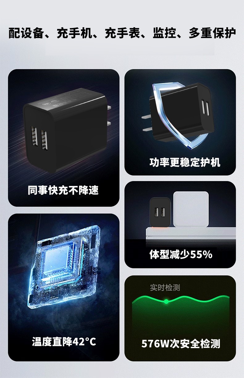 3C认证5v2a充电头usb电源适配器充头双口充电插头2a充电器头套装