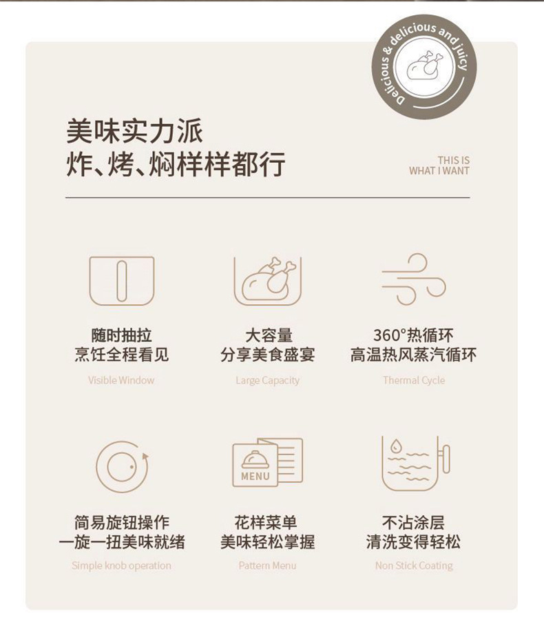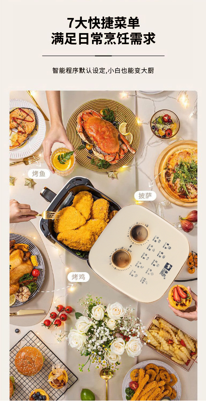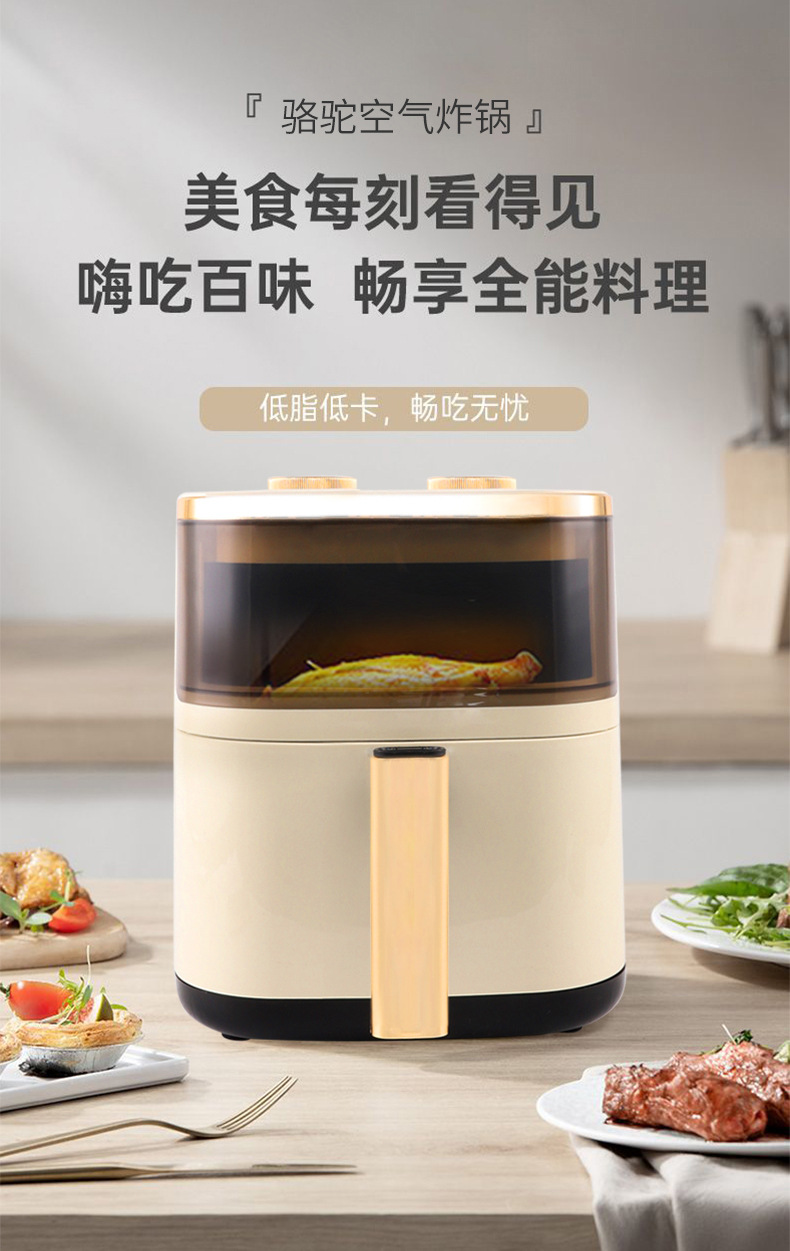 新款骆驼空气炸锅家用多功能6L大容量智能电炸锅全自动烤箱礼品