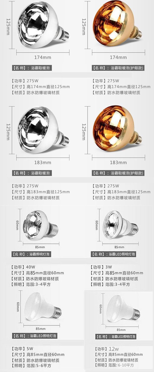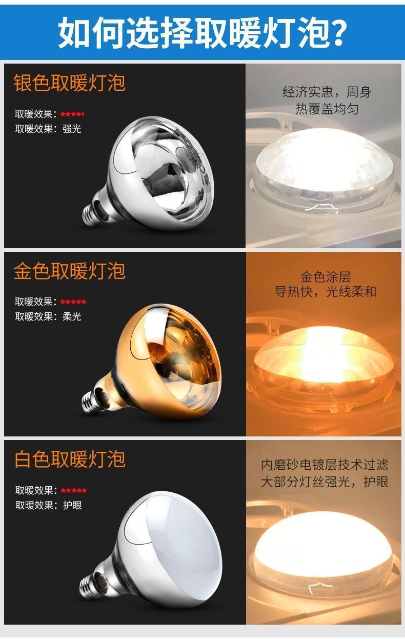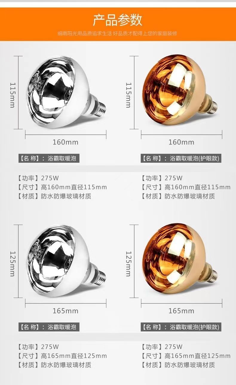 浴霸取暖灯泡275W防爆老式卫生间浴室加热中间照明螺口烤灯通用