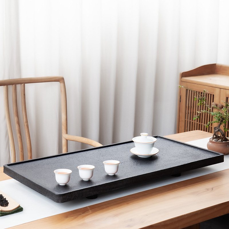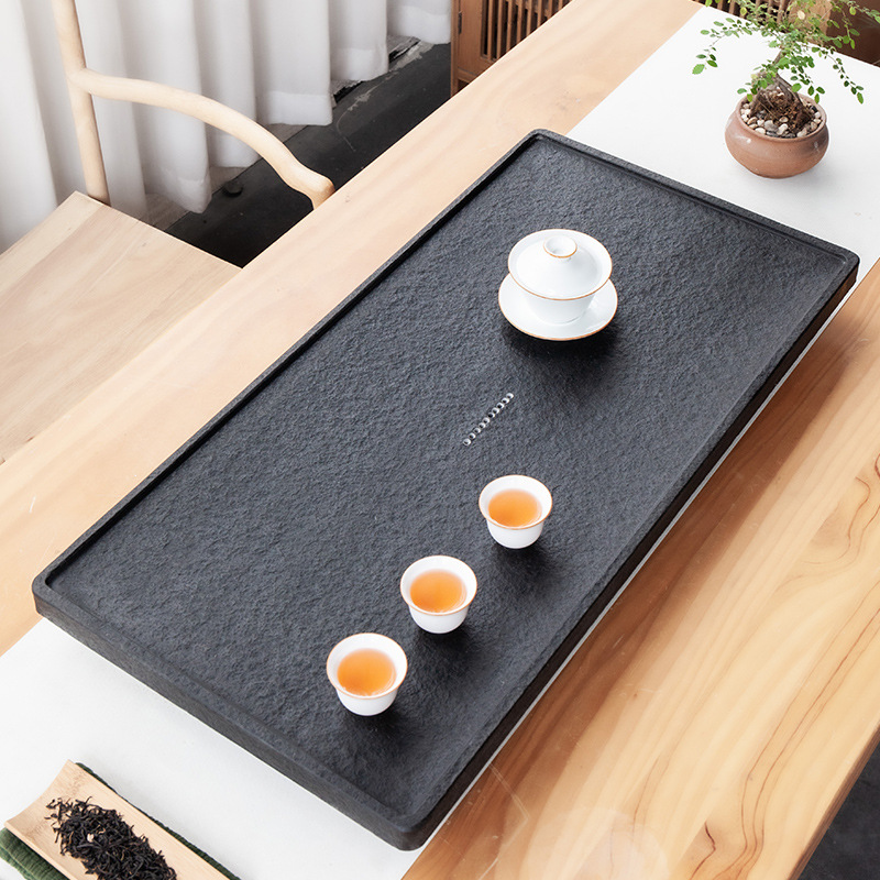 天然乌金石头茶盘家用简约大小号茶台石材现代客厅功夫茶具海托盘