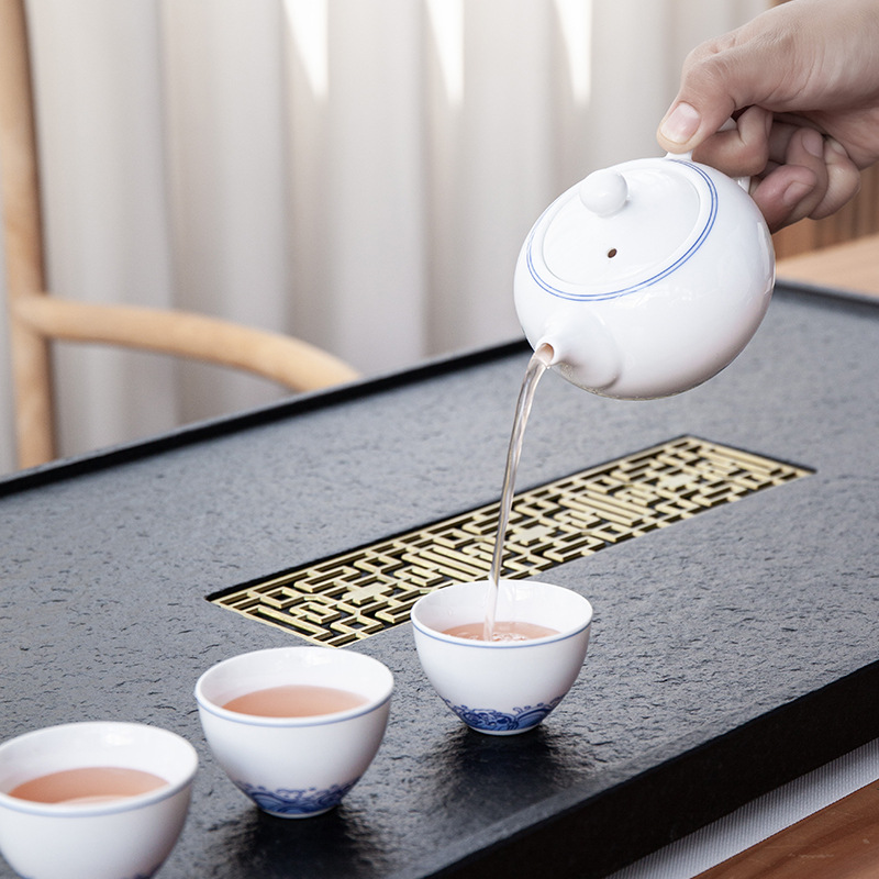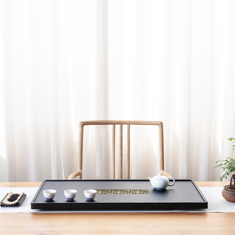 天然乌金石茶盘整块家用现代简约石头茶台大小号石材茶海茶具套装