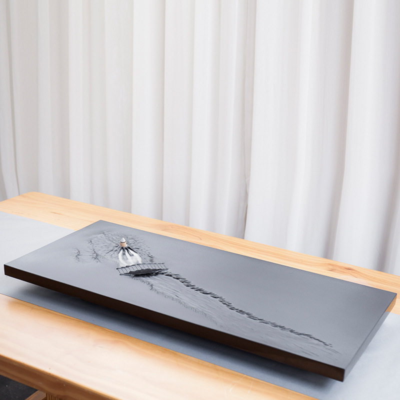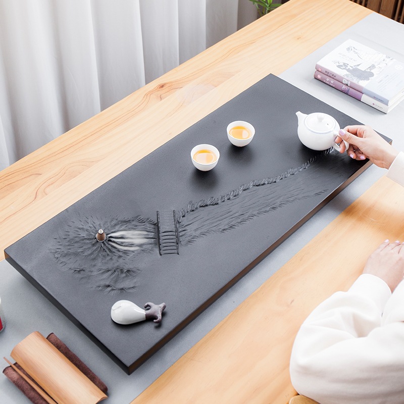 天然乌金石茶盘家用立体浮雕整块石茶台现代轻奢功夫茶具茶海批发