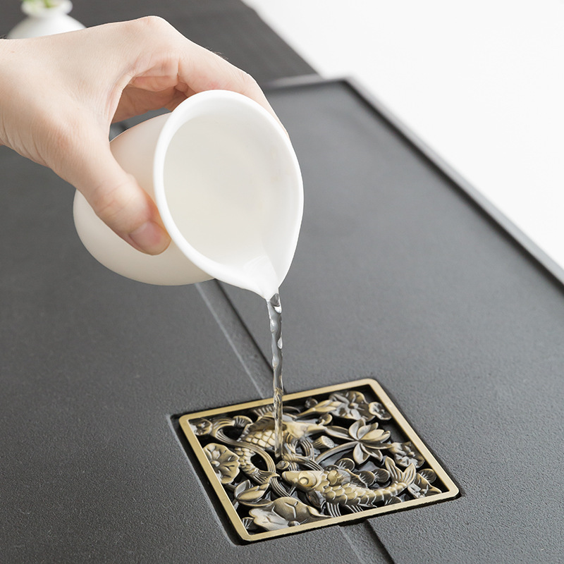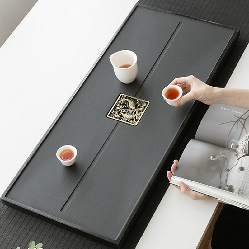 天然乌金石茶盘大号功夫茶具套装家用现代简约排水茶海黑金石茶台