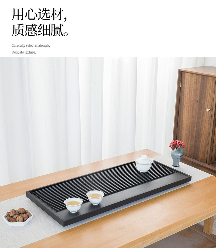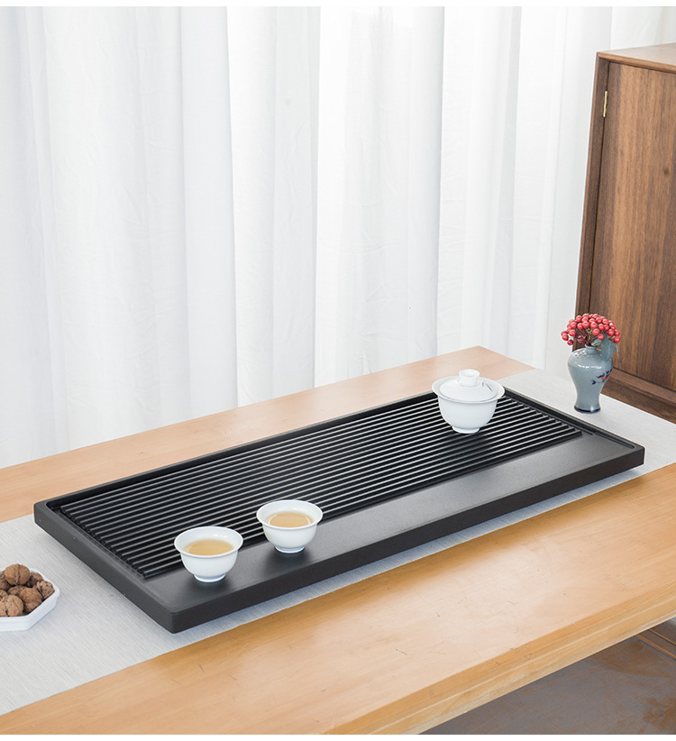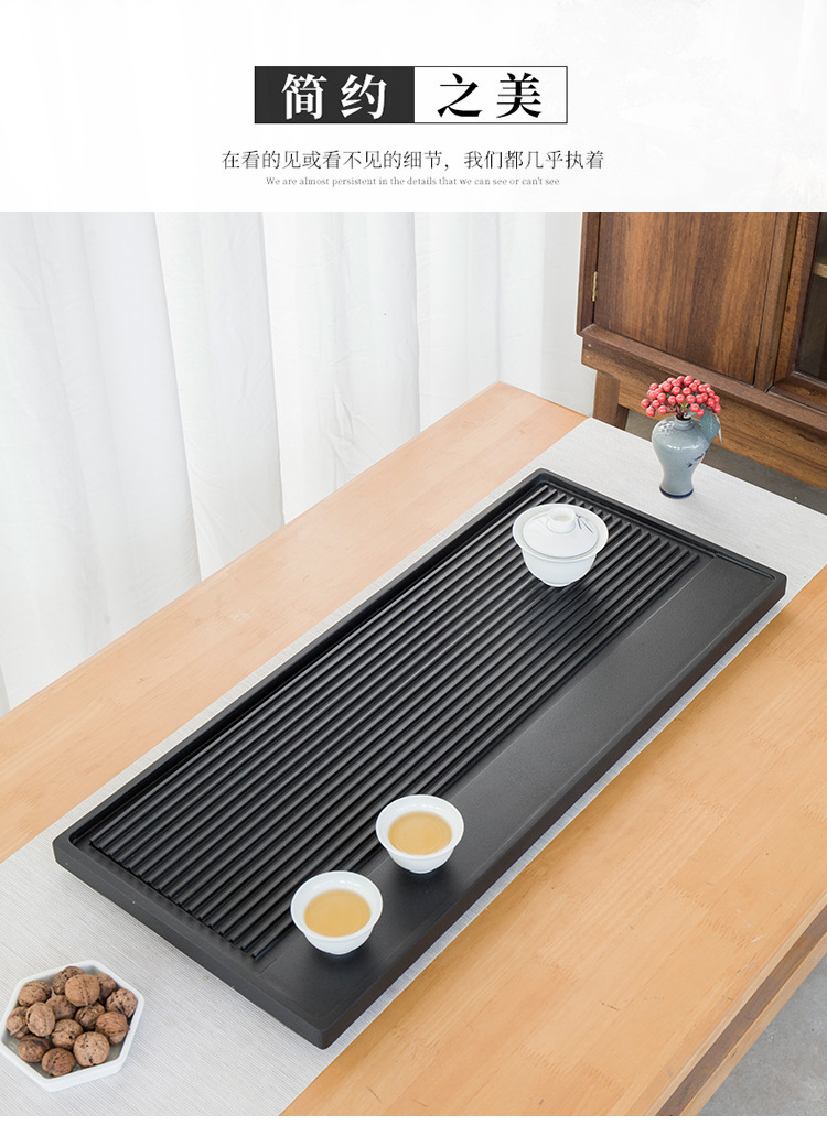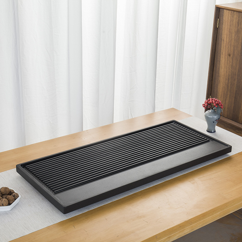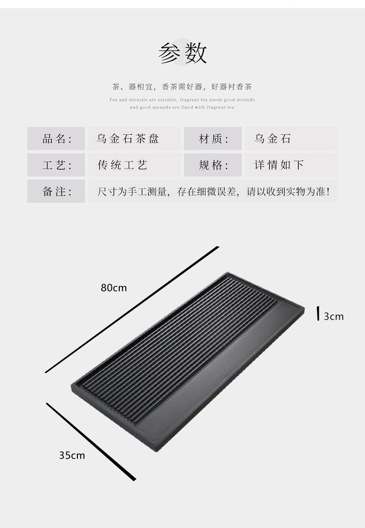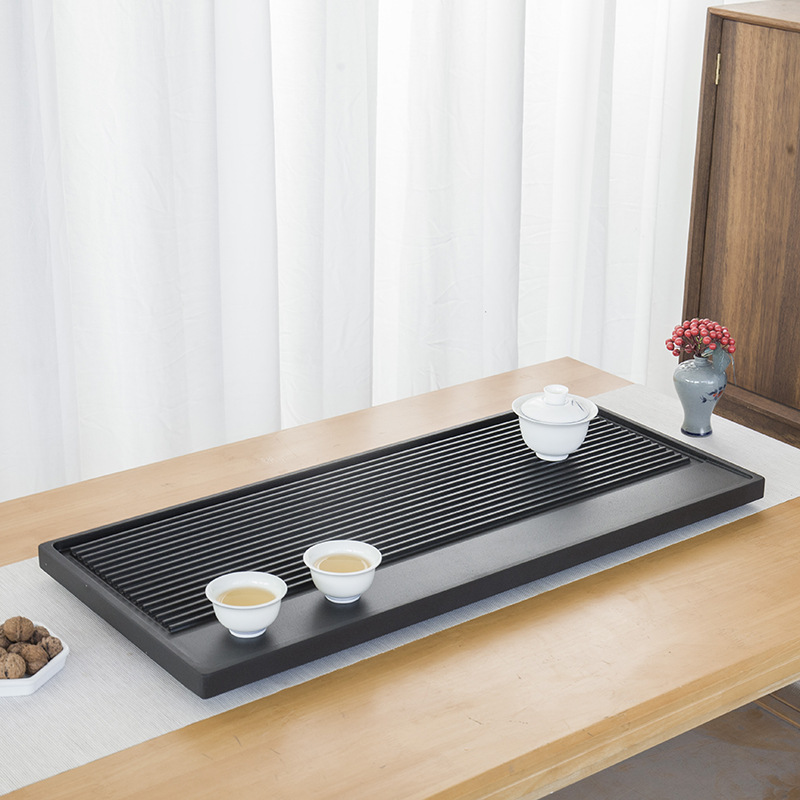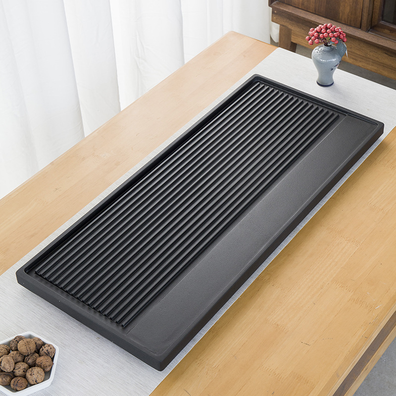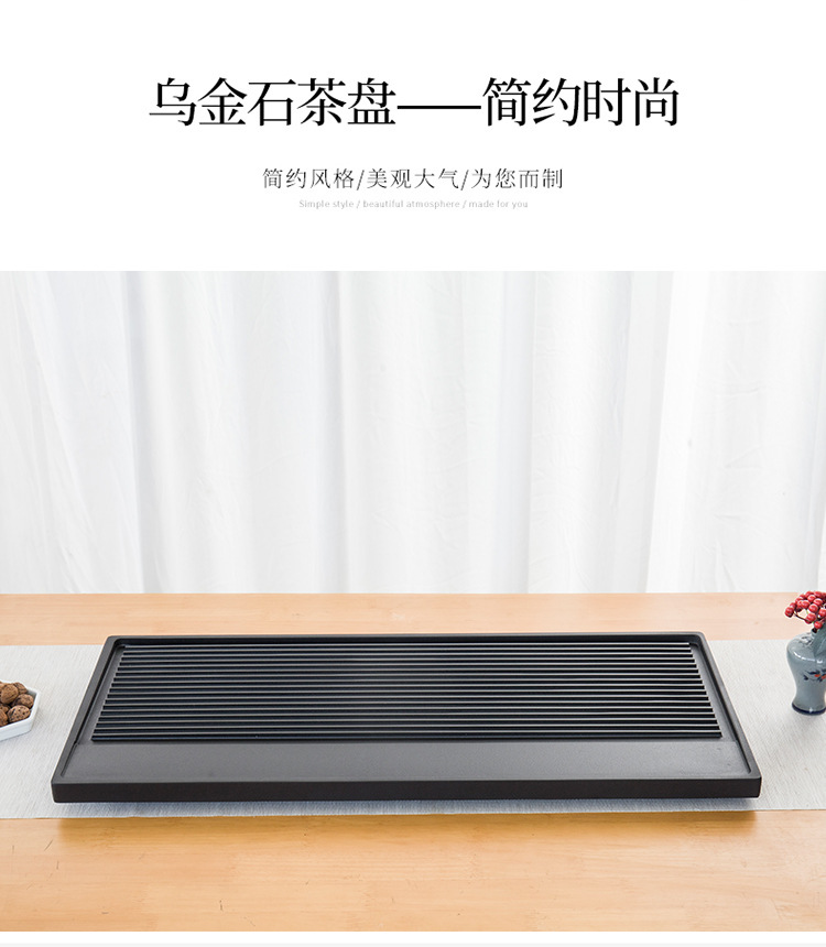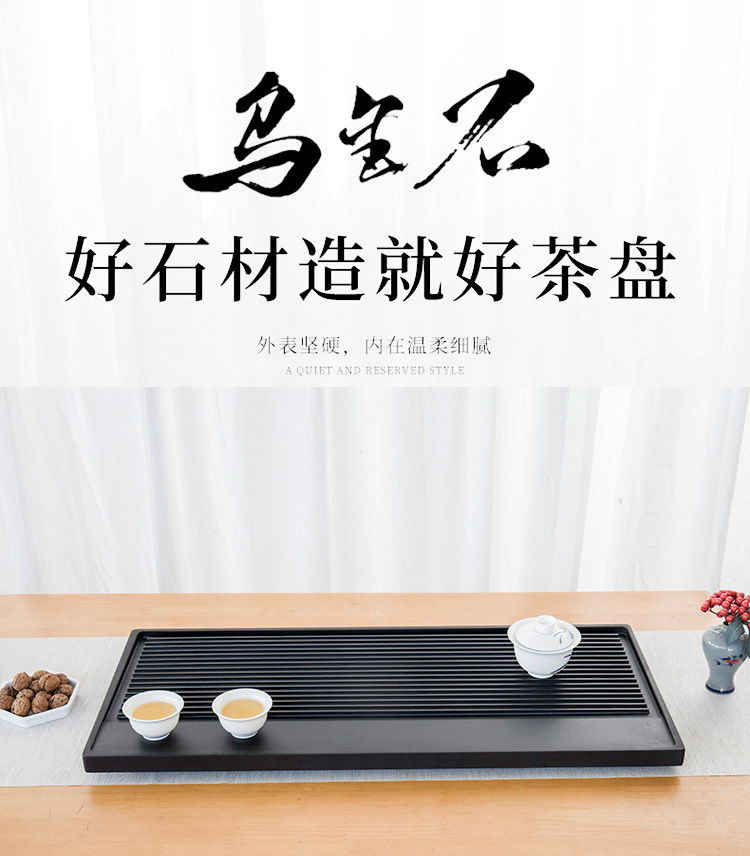 天然乌金石茶盘家用中式一体式石盘石头单盘整块石茶台干湿带条纹