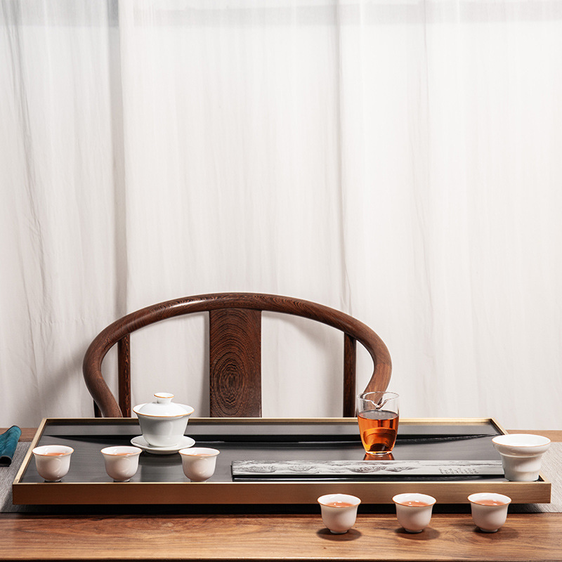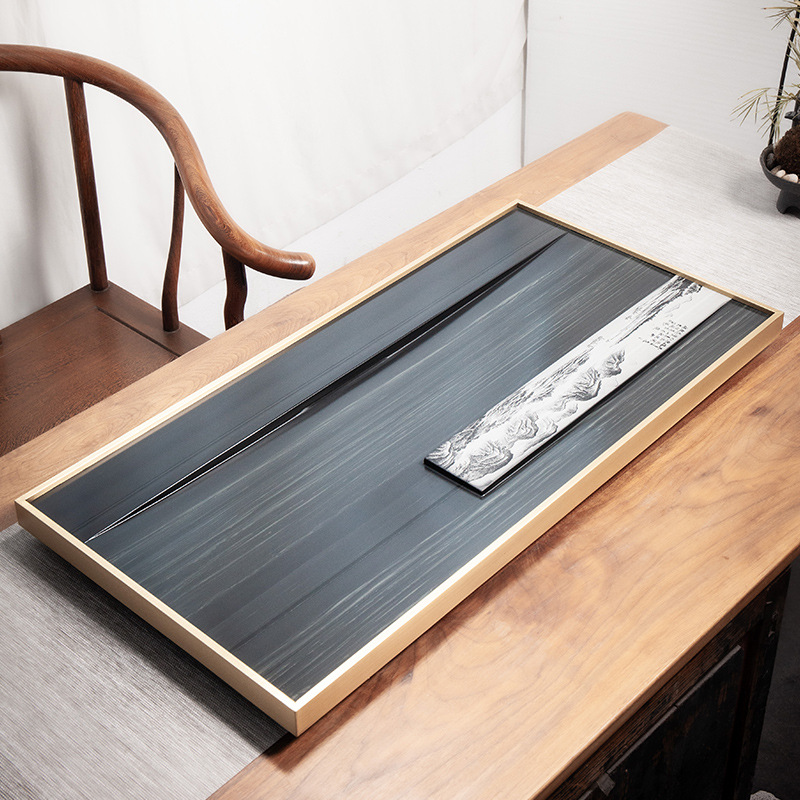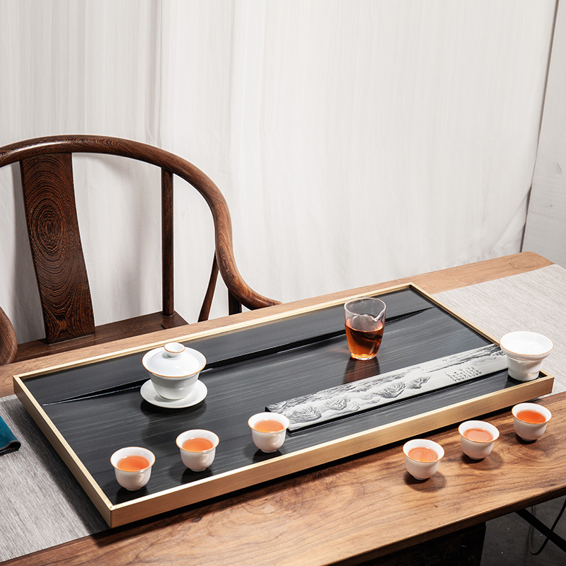 实力工厂加工定制乌金石茶盘皇庭玉石茶盘影雕轻奢厂家批发