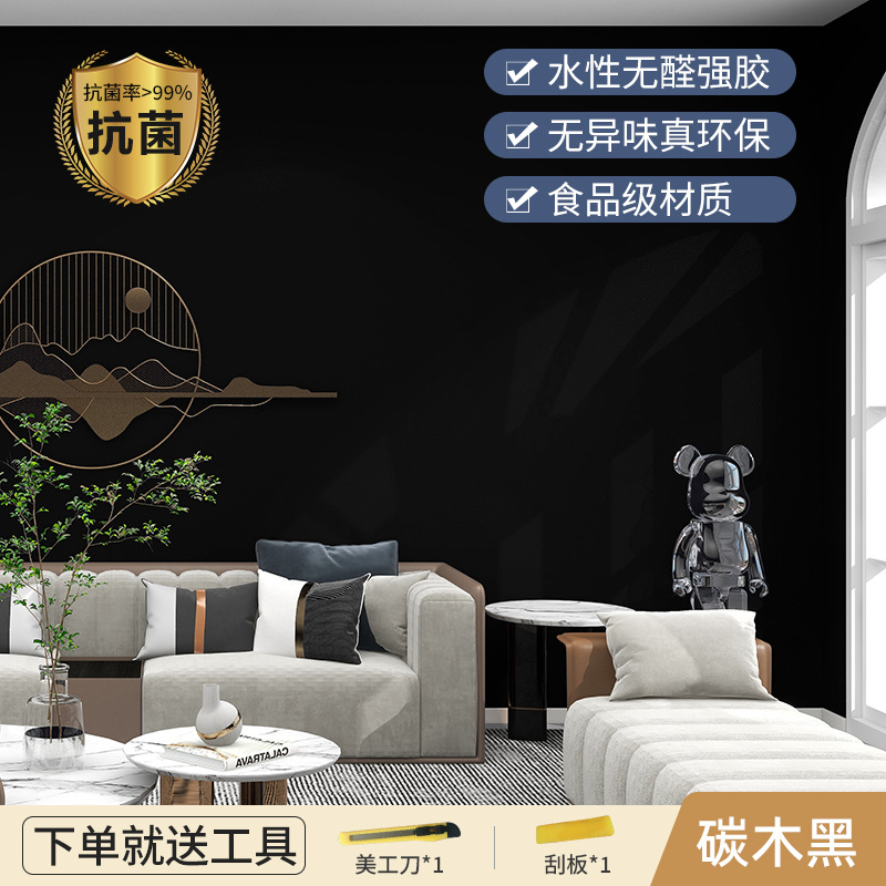 腻子白墙纸自粘防水防潮家用宿舍卧室温馨墙面壁纸白色加厚墙贴纸
