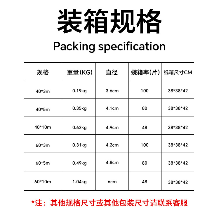 | 宽40cm*长10米(分卷+塑封) | USD $2.37 | 9992 piece available |