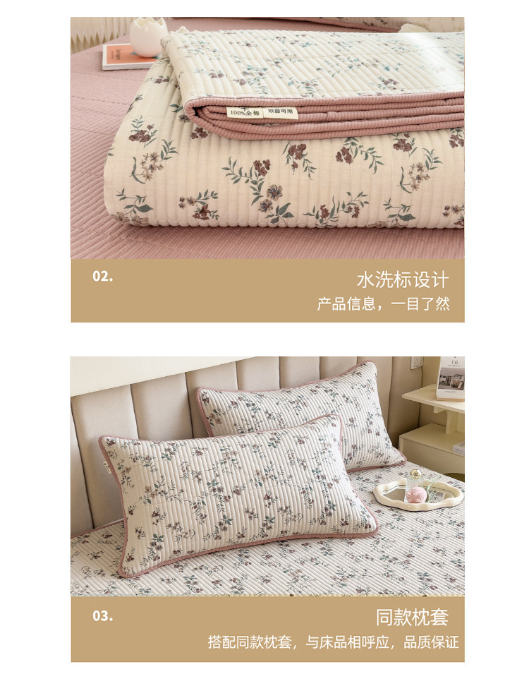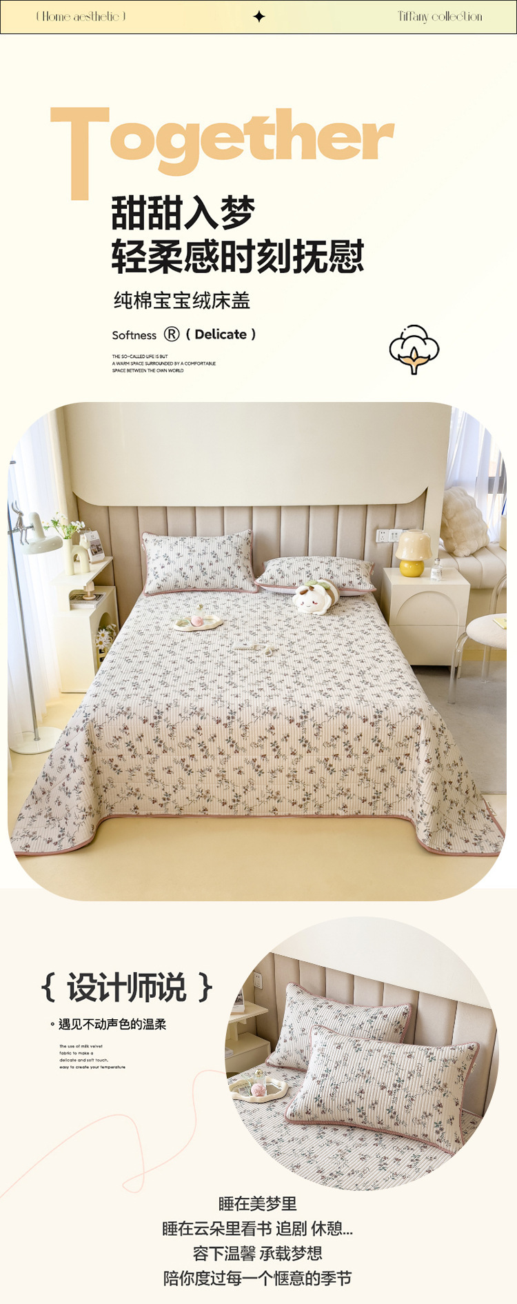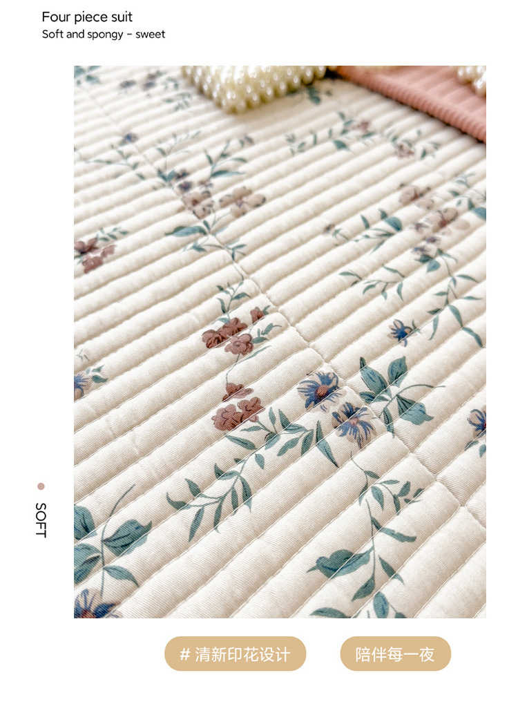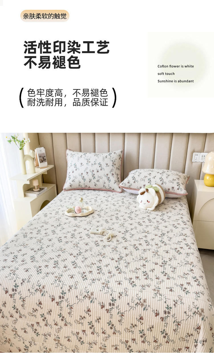 跨境新款ins风全棉床盖软糯夹棉单件纯棉床单加大榻榻米防滑床垫
