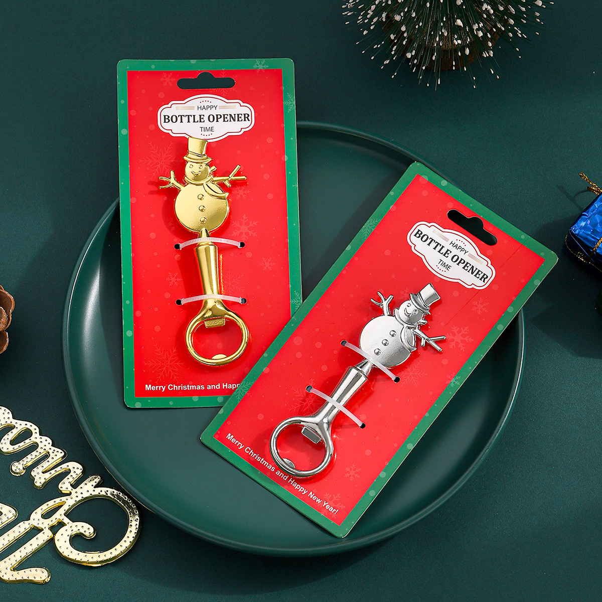 跨境圣诞雪人开瓶器欧美圣诞节日派对小礼品锌合金啤酒起盖器批发