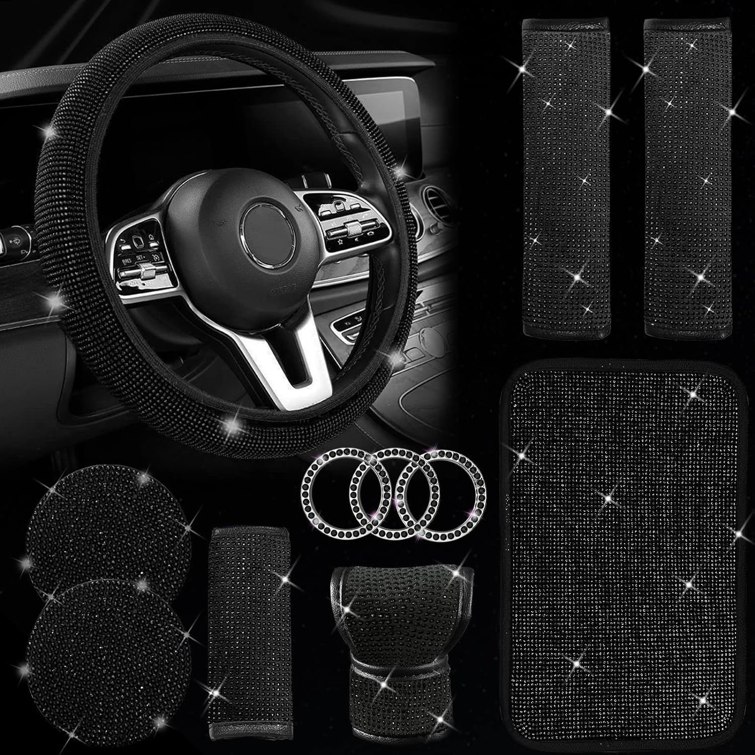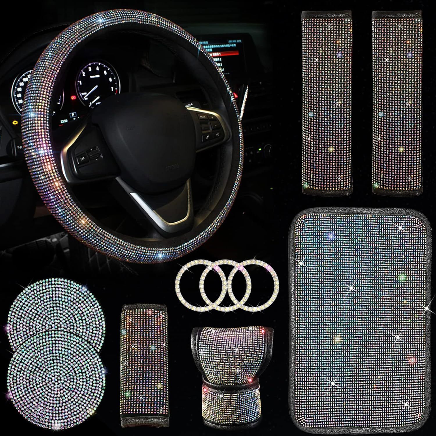 跨境汽车方向盘套满钻汽车套装排挡套护肩套手刹扶手垫镶钻杯垫