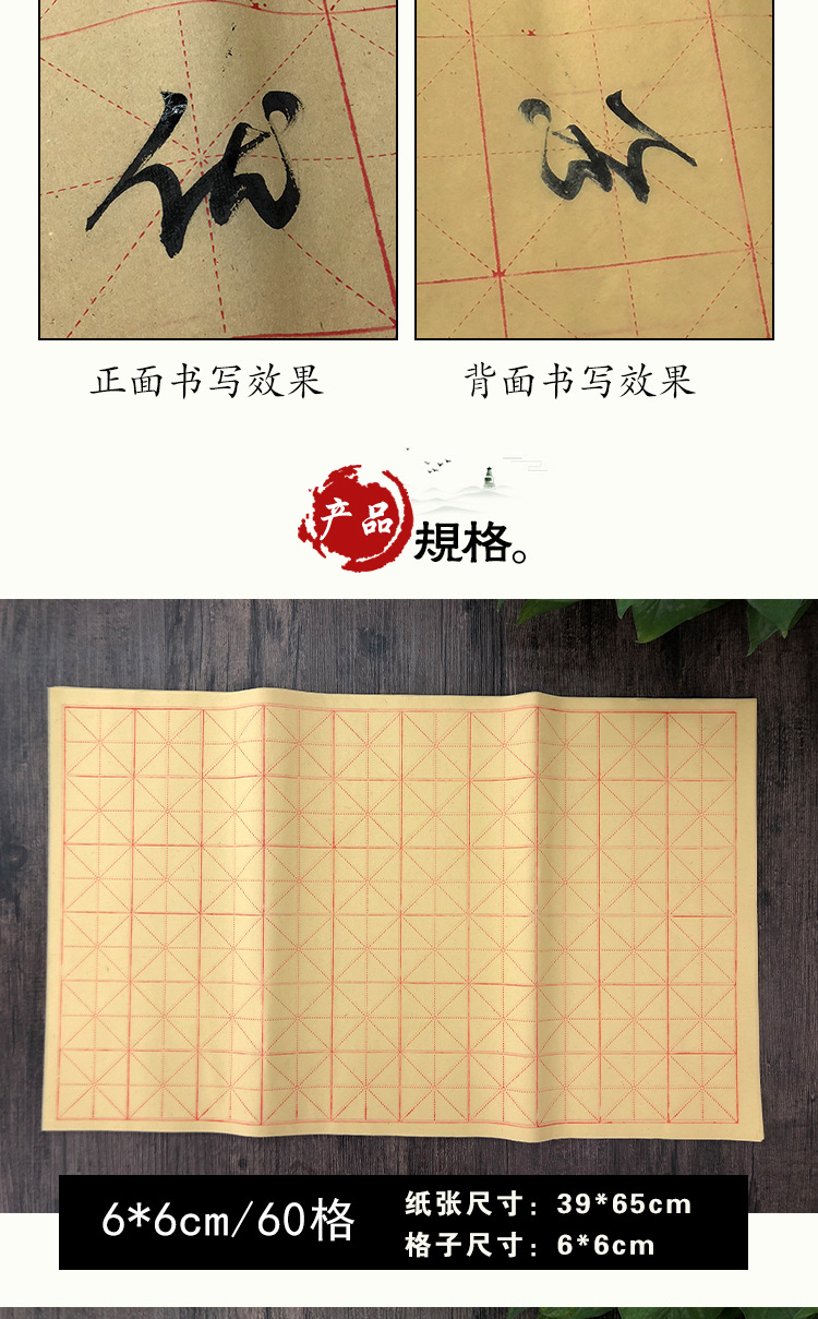 毛边纸米字格宣纸书法学生练字纸批发练习毛笔字加厚元书纸半生熟