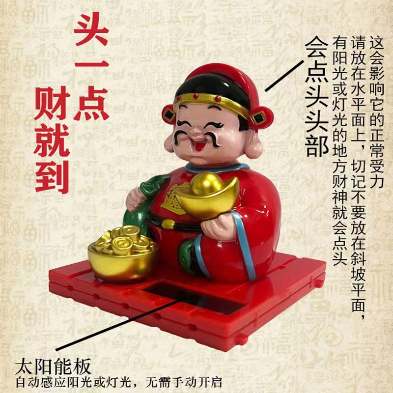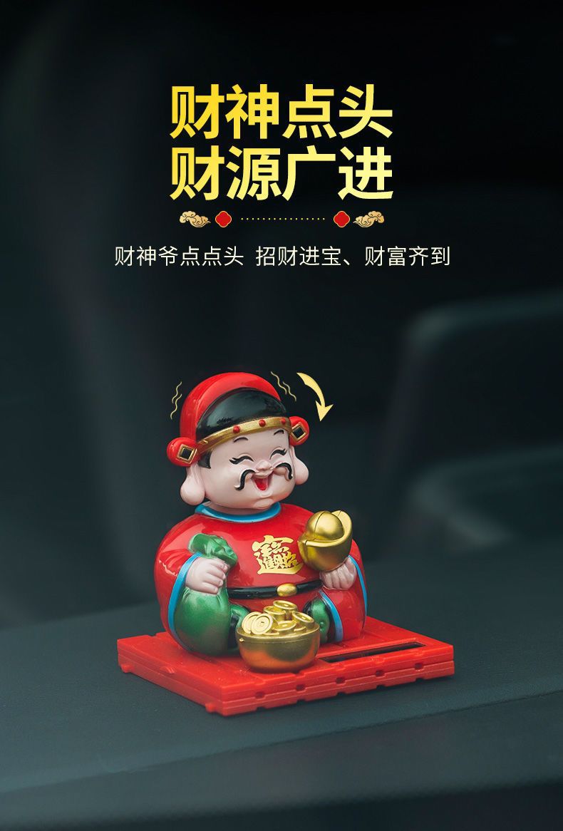 太阳能财神汽车摆件新年财神爷装饰品点头财神中控台车载点头财神