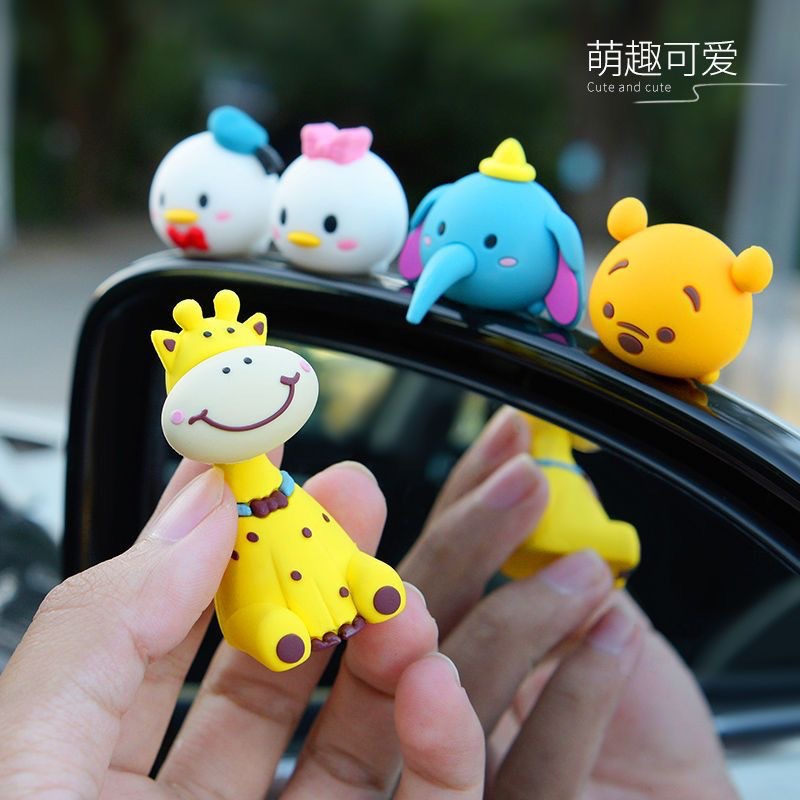 卡通可爱汽车摆件米奇叠叠乐鹿老师狮同学公仔车载中控后视镜饰品