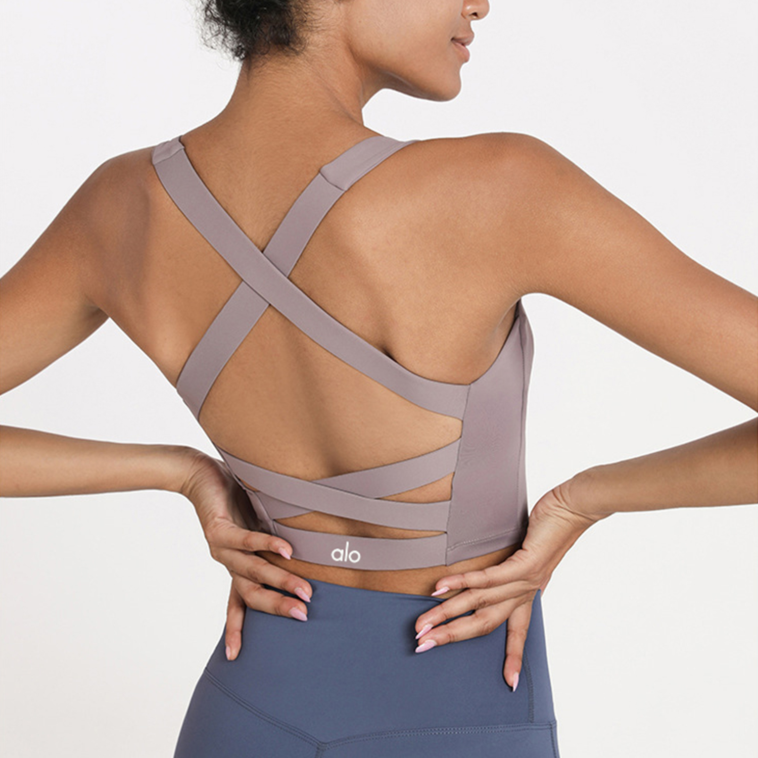 alo瑜伽内衣yoga高强度健身背心运动跑步带胸垫防震挂脖美背文胸