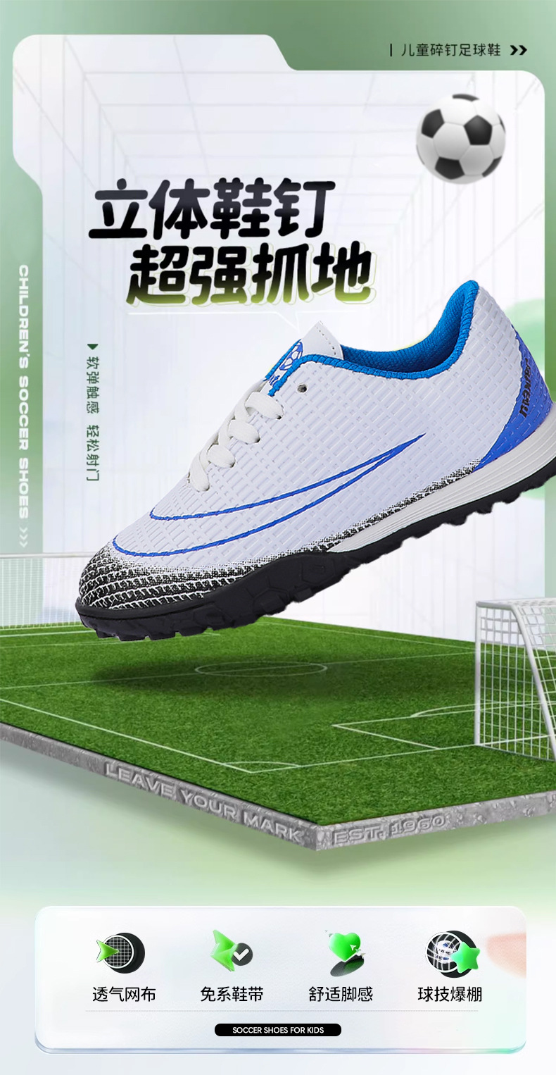 亏本3天新款时尚打勾儿童足球鞋c罗刺客碎钉室内球鞋透气防撞球鞋