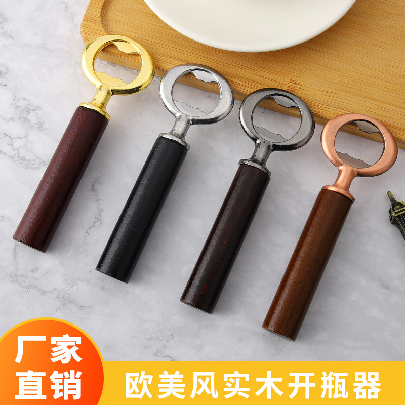 欧美啤酒开瓶器亚马逊爆款锌合金螺母木柄开瓶器婚礼回礼小礼品