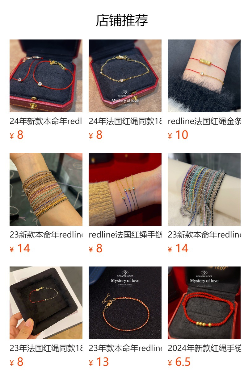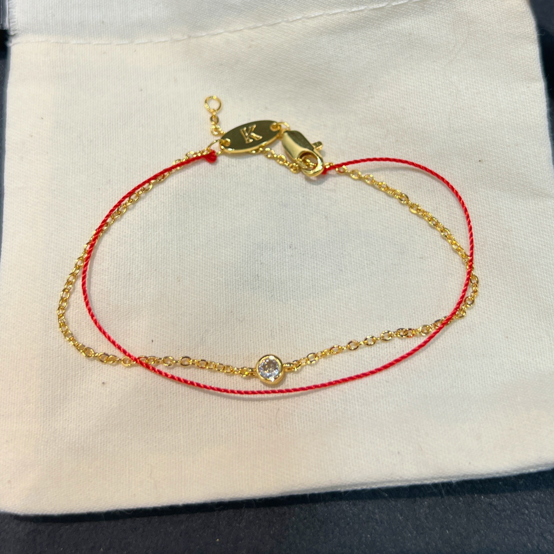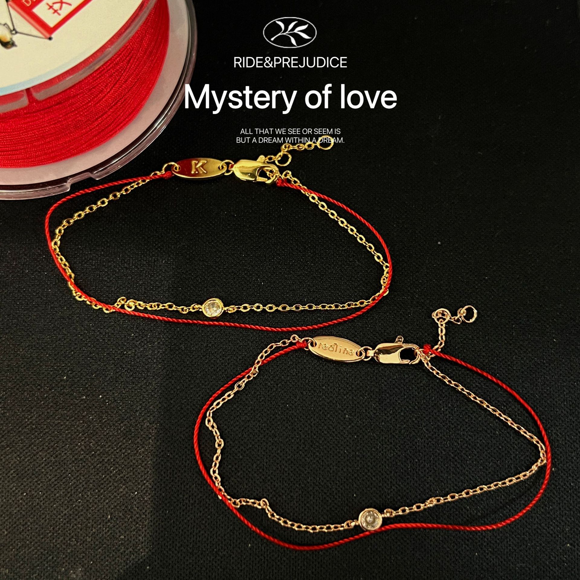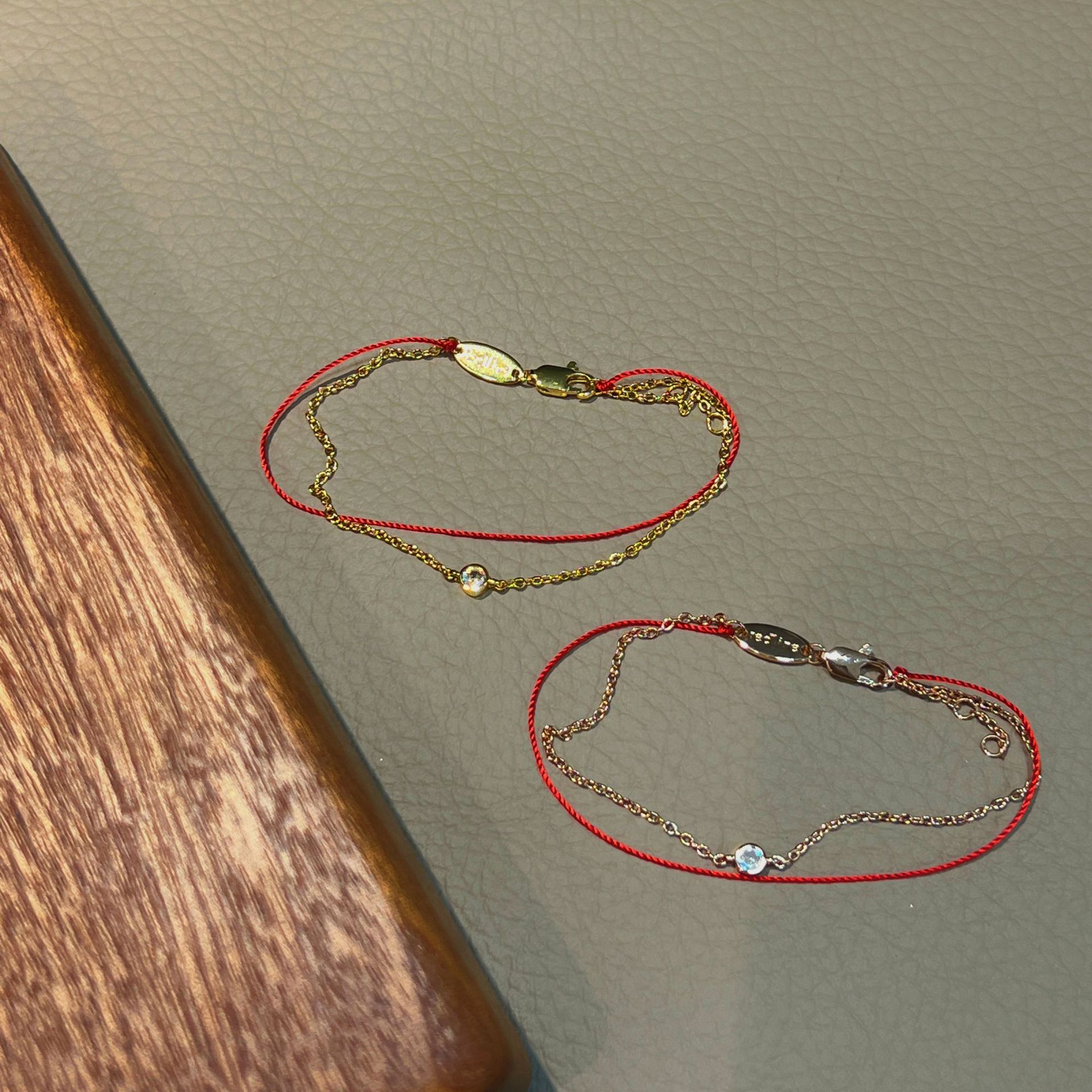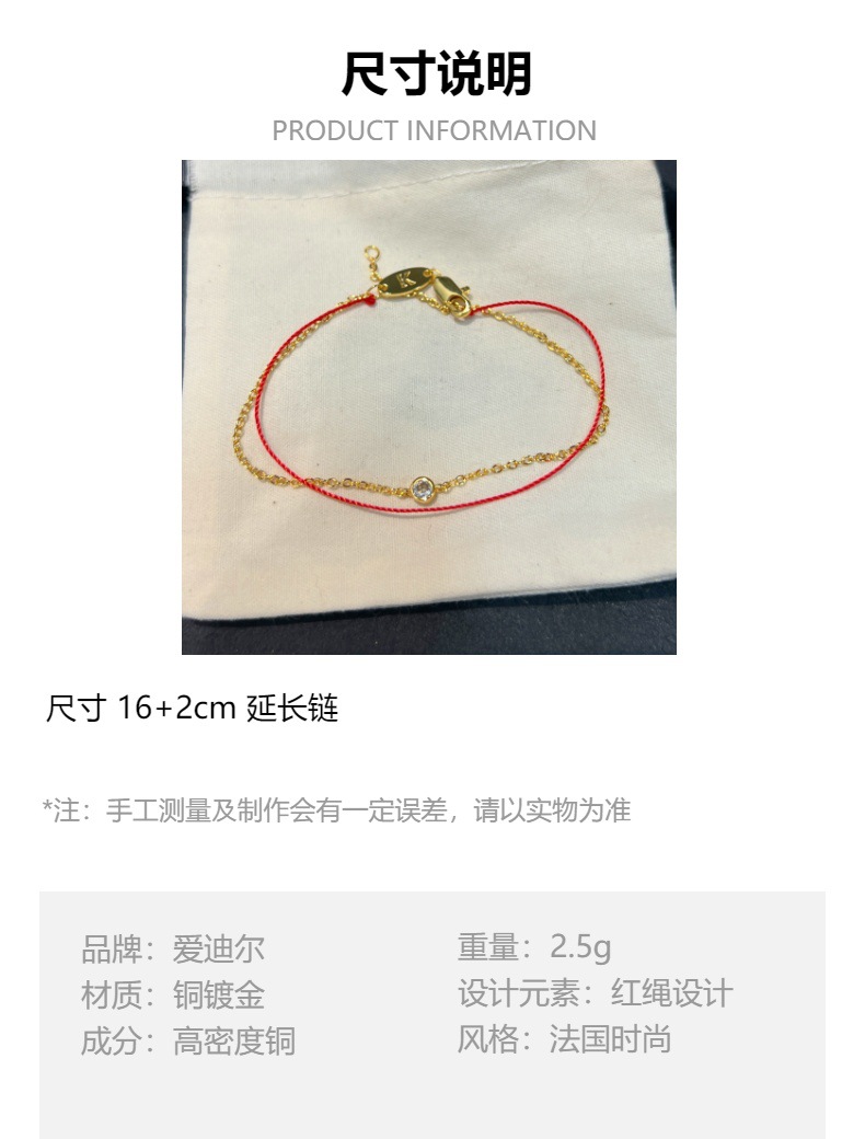 法国红绳redline小手链双层一绳一链手绳明星同款手饰七夕送女友