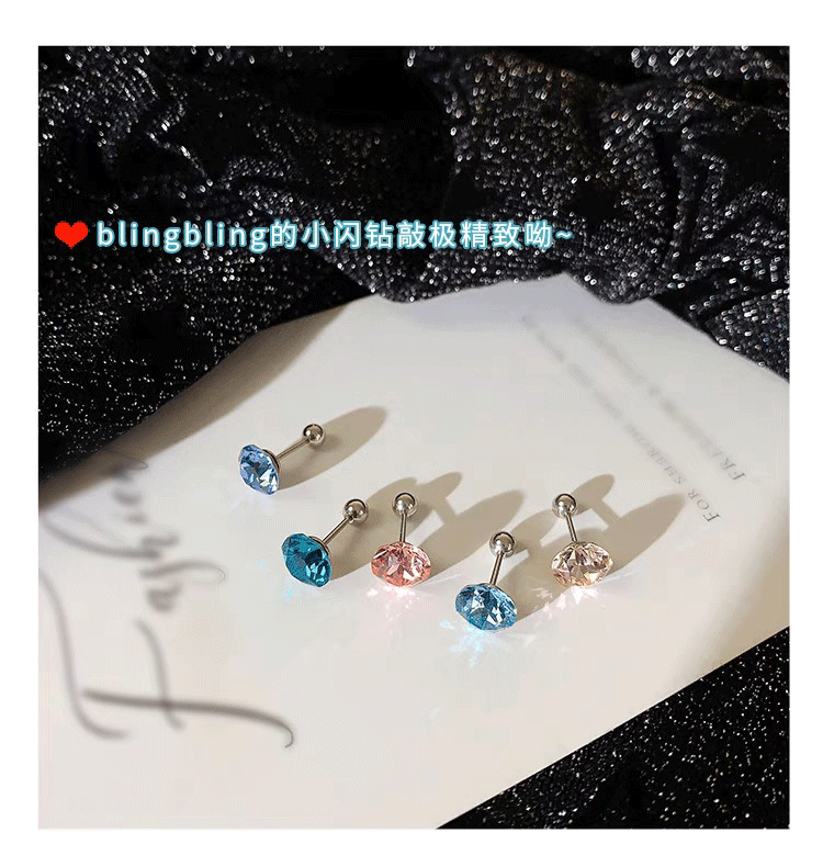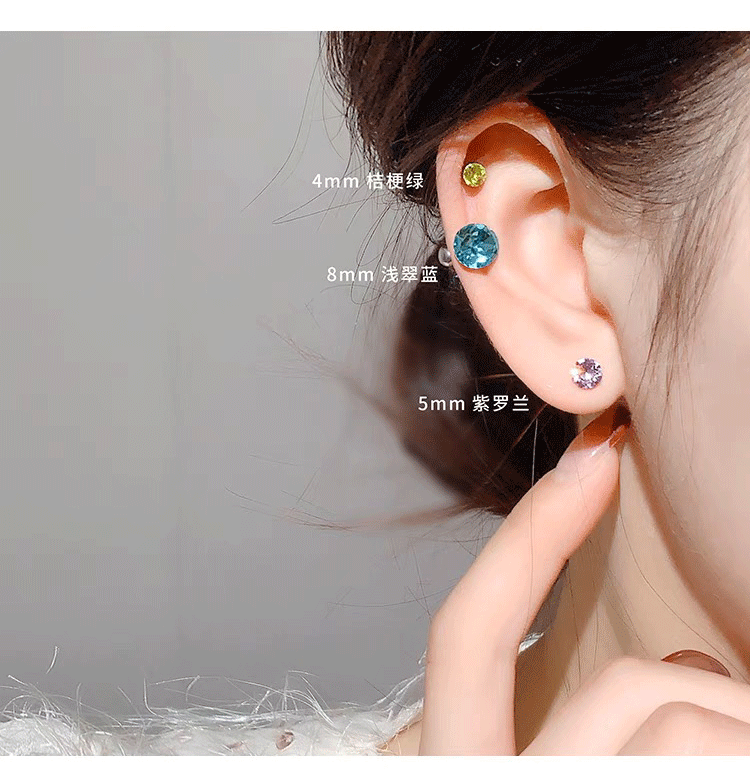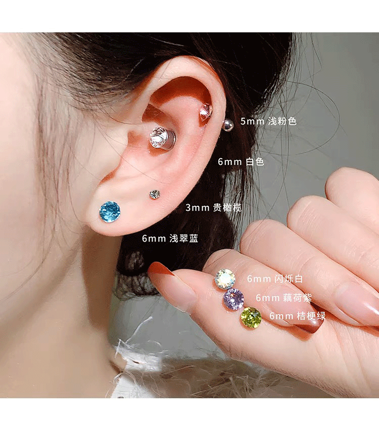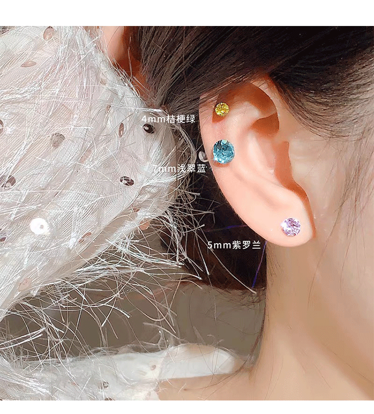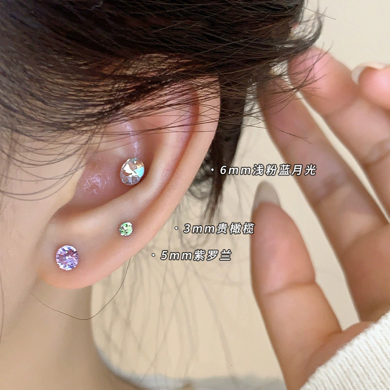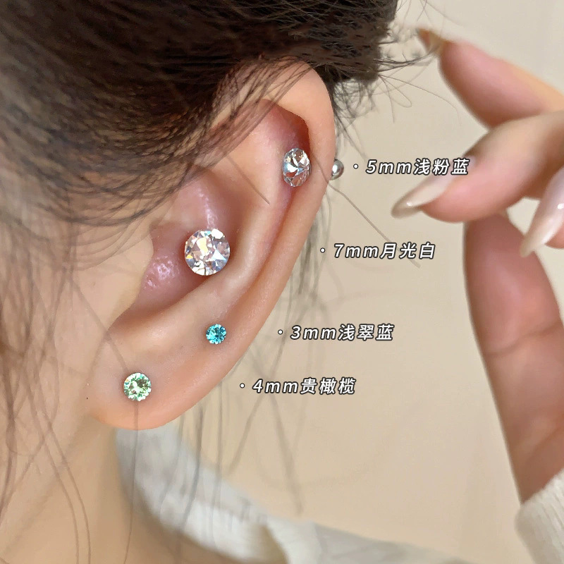 7mm施家圆钻超闪施家华子耳钉女防过敏学生耳骨钉钛合金f136耳蜗
