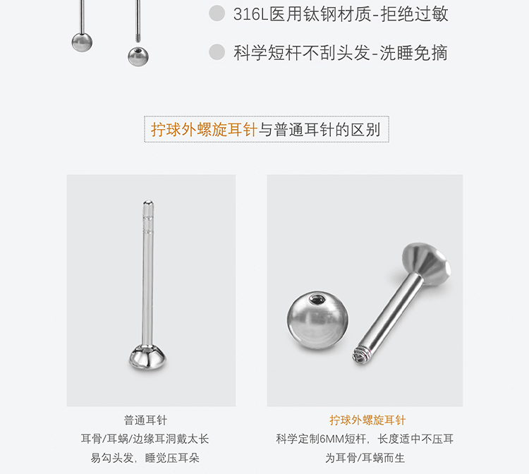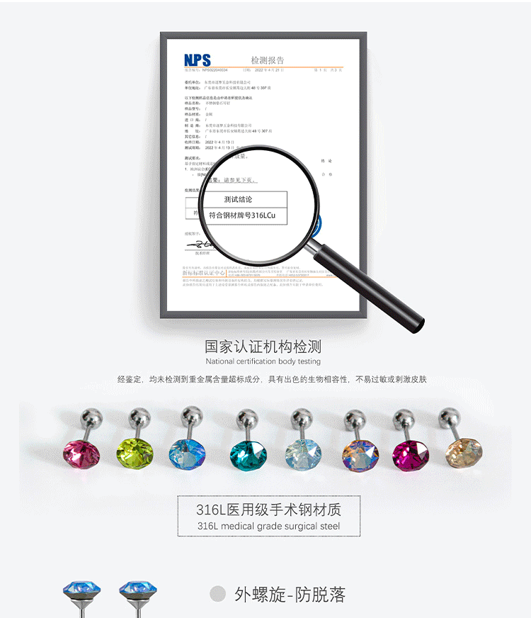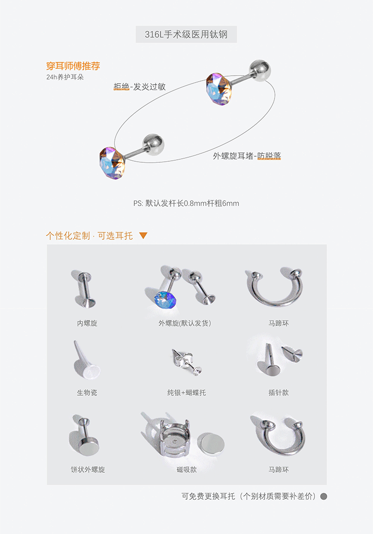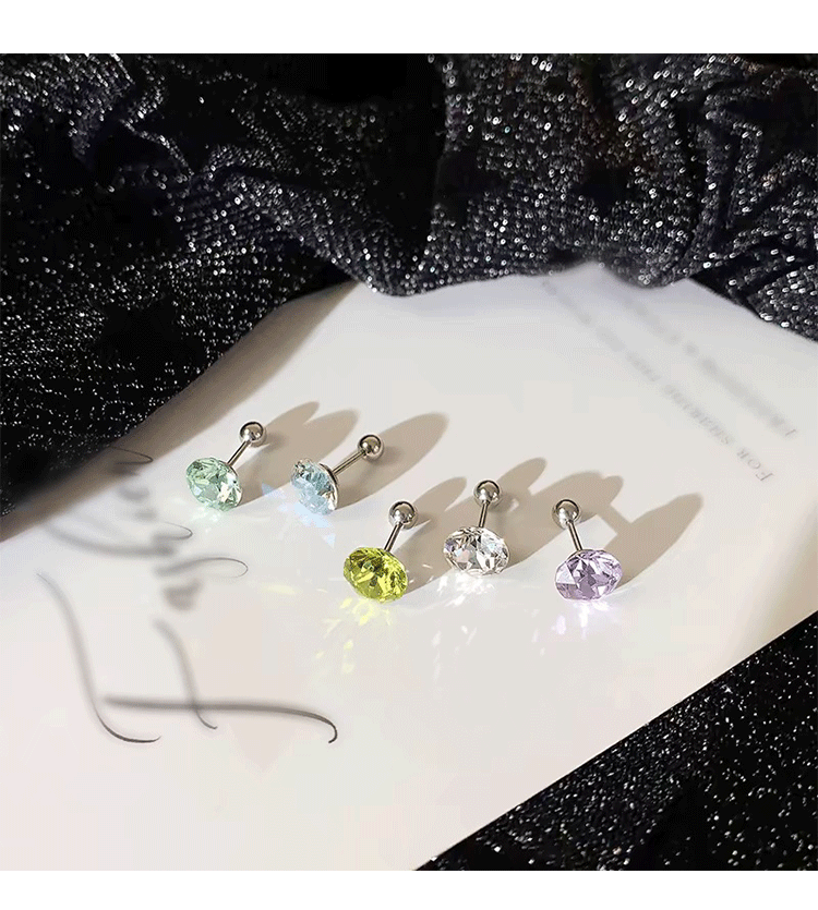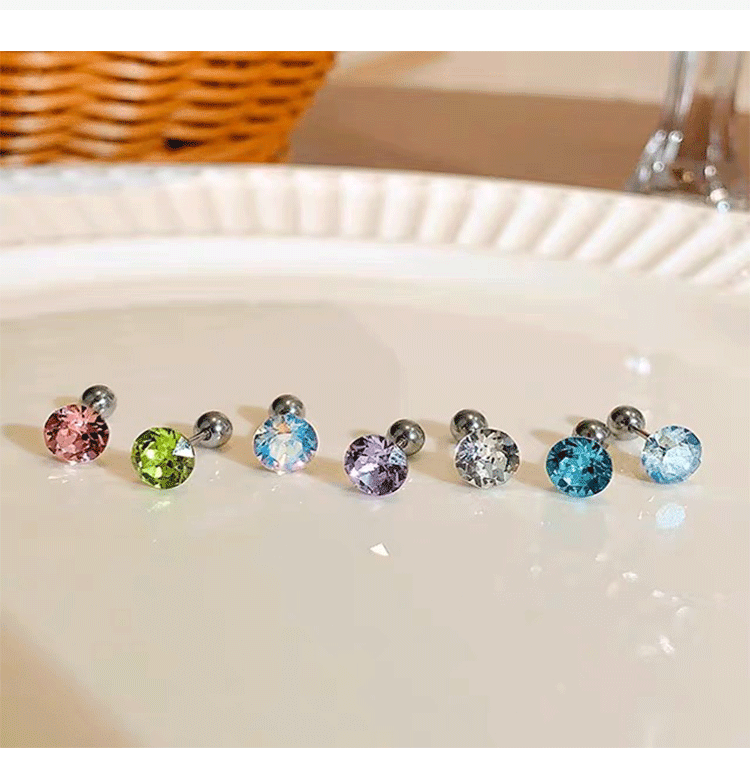 7mm施家圆钻超闪施家华子耳钉女防过敏学生耳骨钉钛合金f136耳蜗