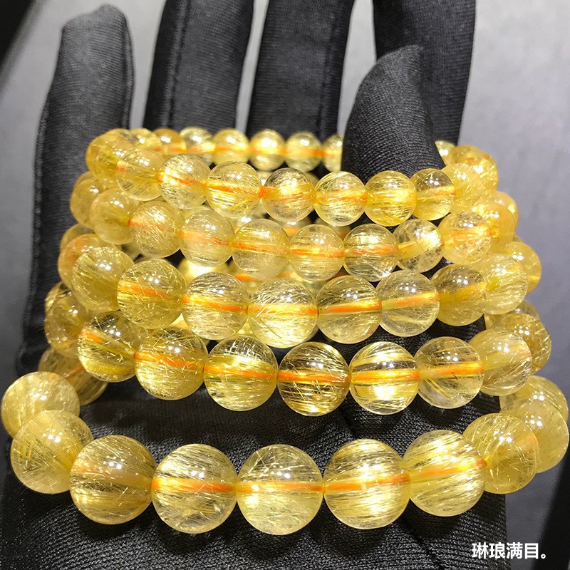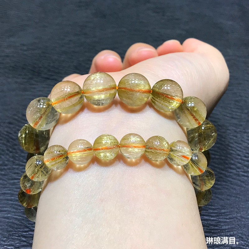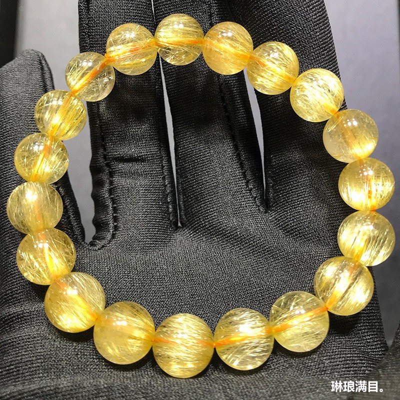 维纳斯发晶手串天然巴西老矿金发晶手链男女钛晶满密顺发晶黄发晶