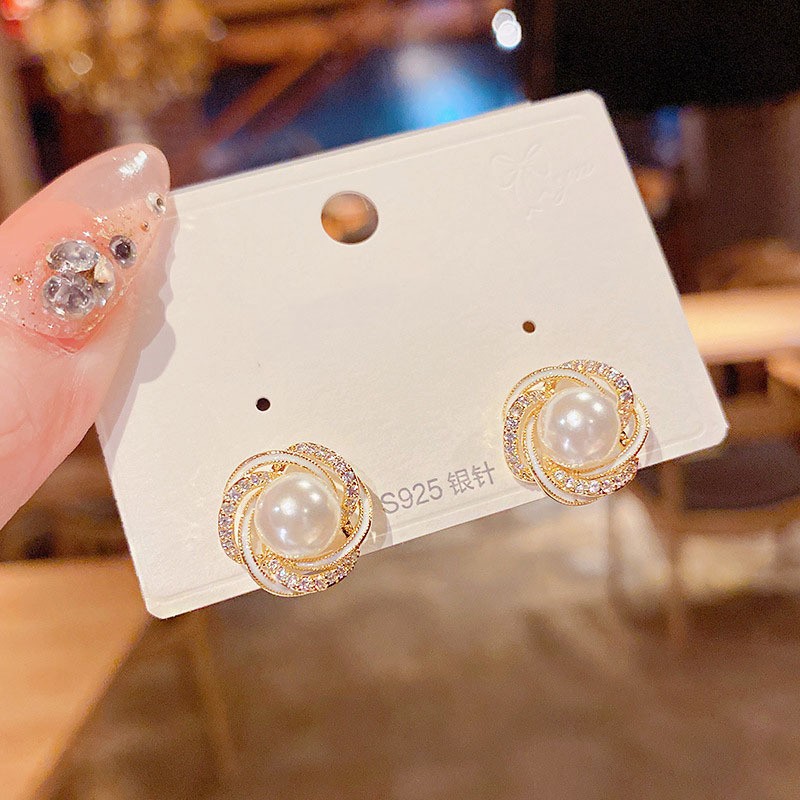 法式珍珠耳钉女小众设计感百搭高级小巧精致耳环新款潮流2024年