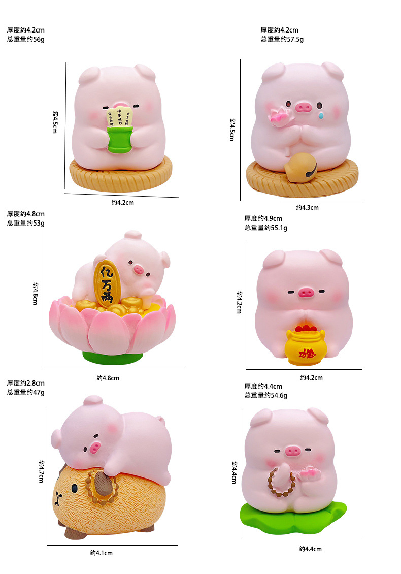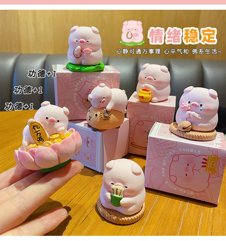 佛系猪猪汽车居家摆件创意精致树脂公仔功德+1家居桌面装饰品摆饰