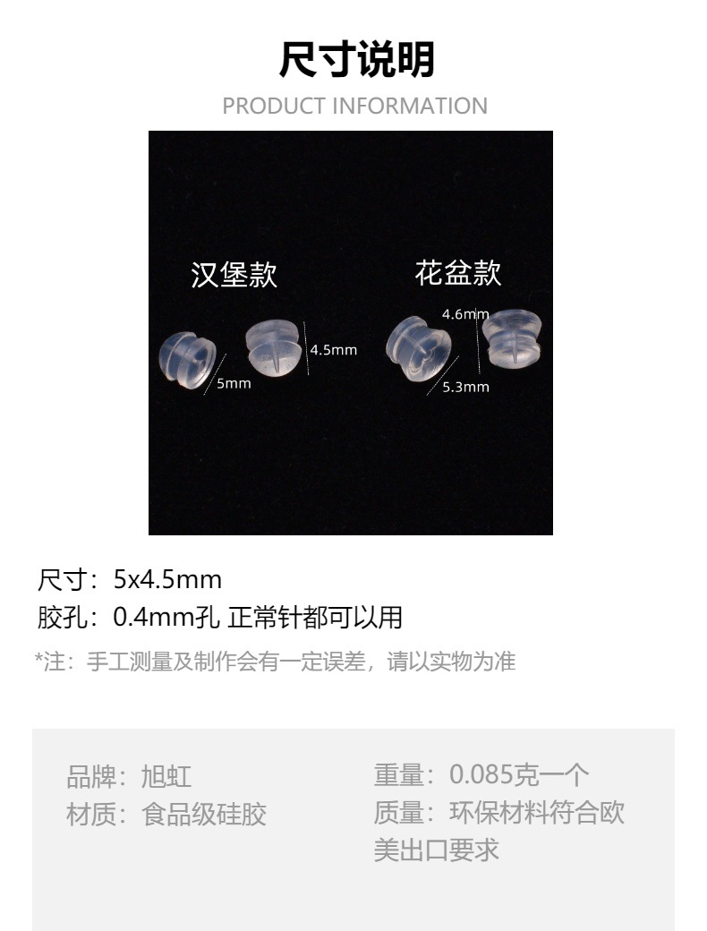 diy耳环配件硅胶汉堡耳堵耳迫透明高级感半成品耳饰耳钉后塞堵头