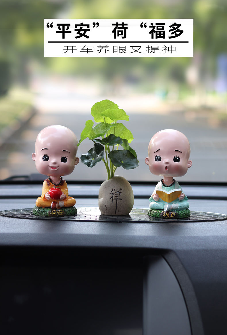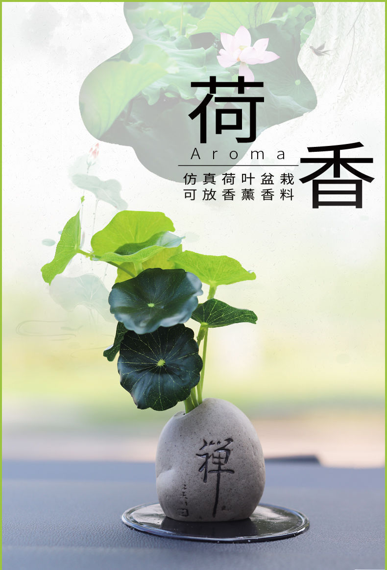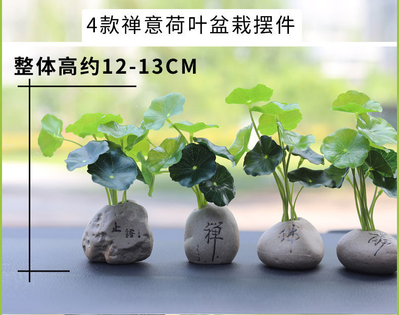 汽车摆件禅意古风荷叶仿真绿植物创意车载搭配装饰用品吉祥果盆栽