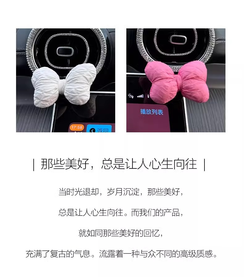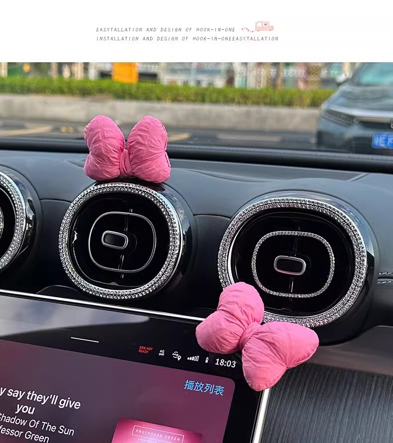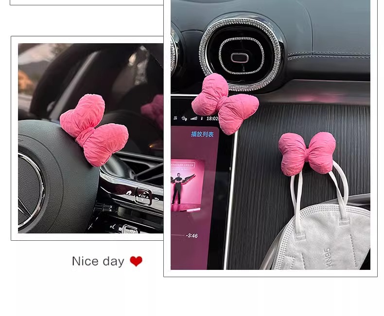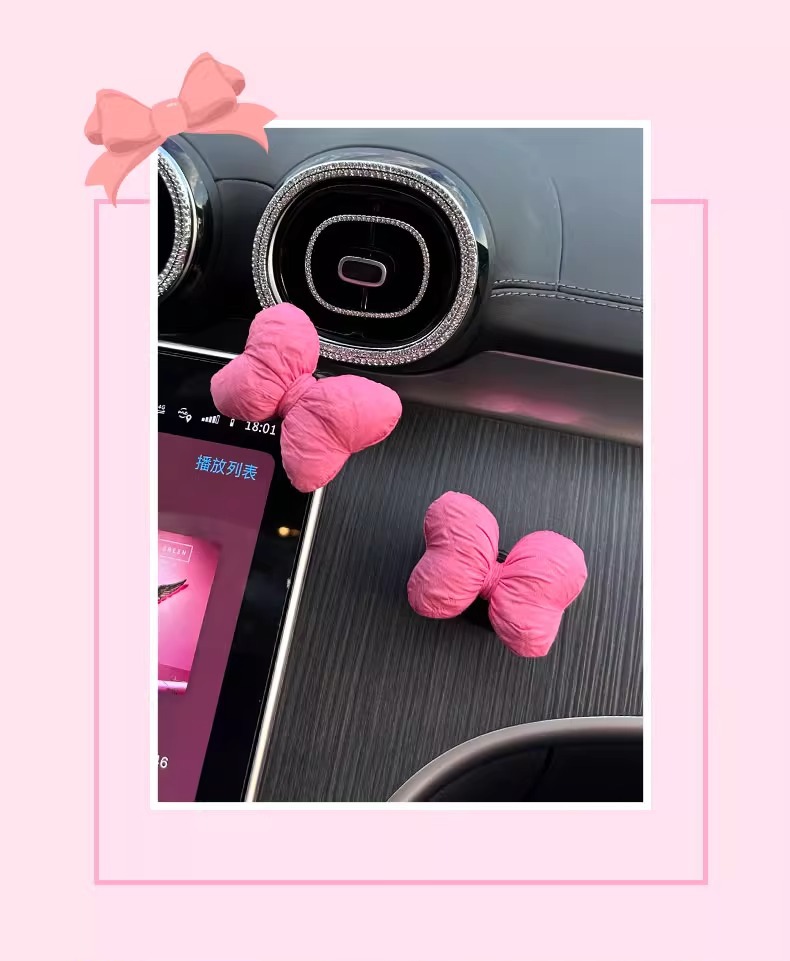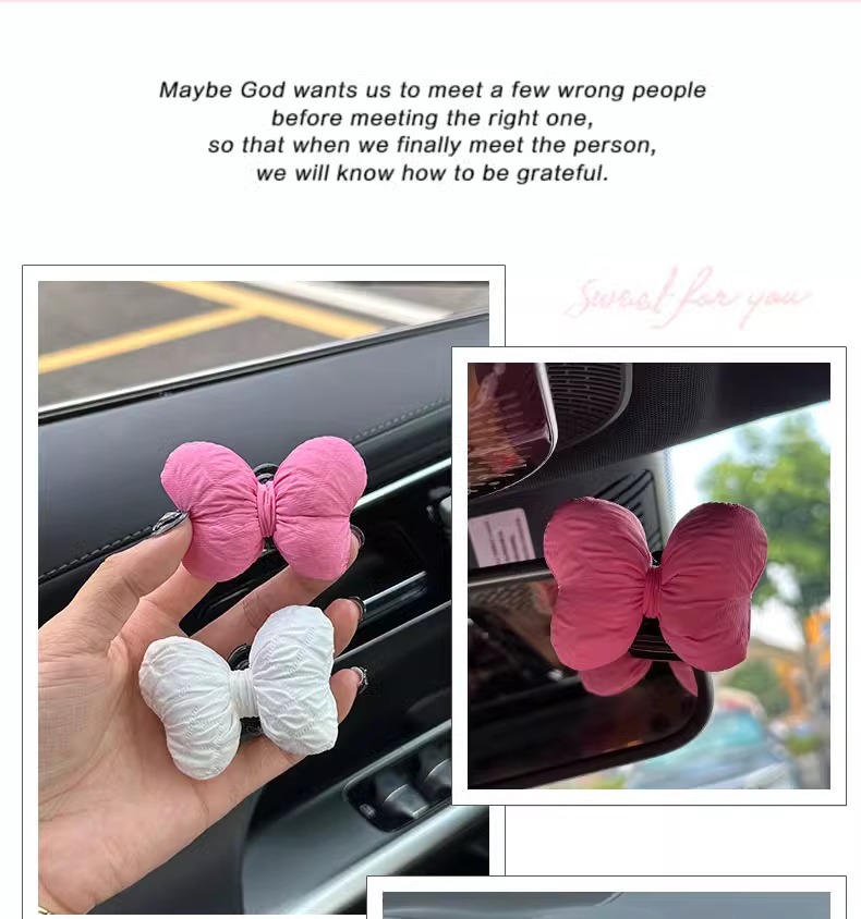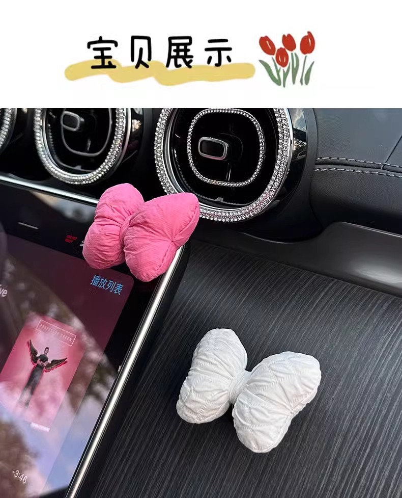 可爱蝴蝶结车载摆件蝴蝶结少女心车载饰品汽车驾驶装饰隐形粘钩女